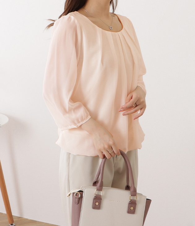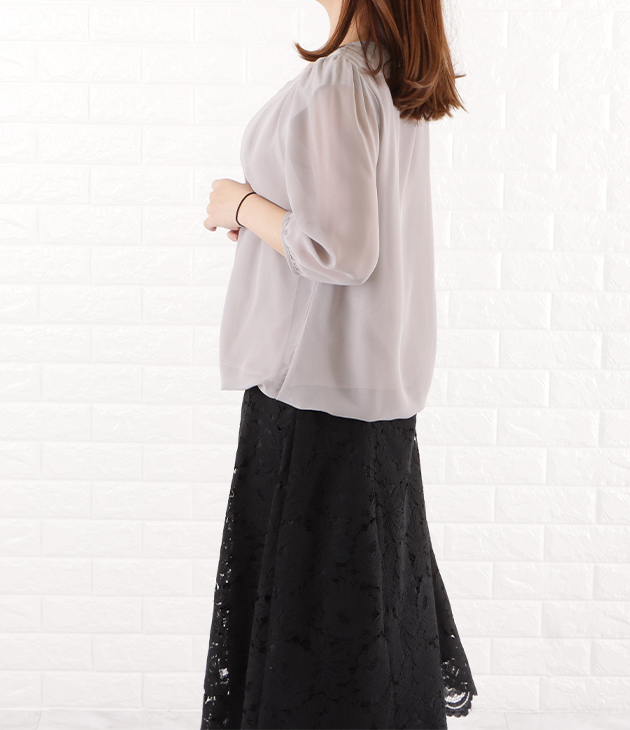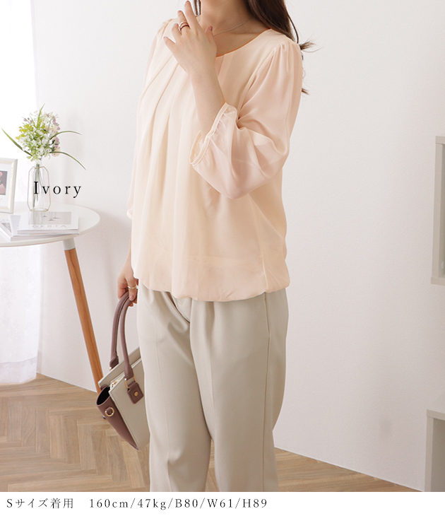 シフォンブラウス シアーブラウス ボリューム袖