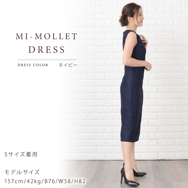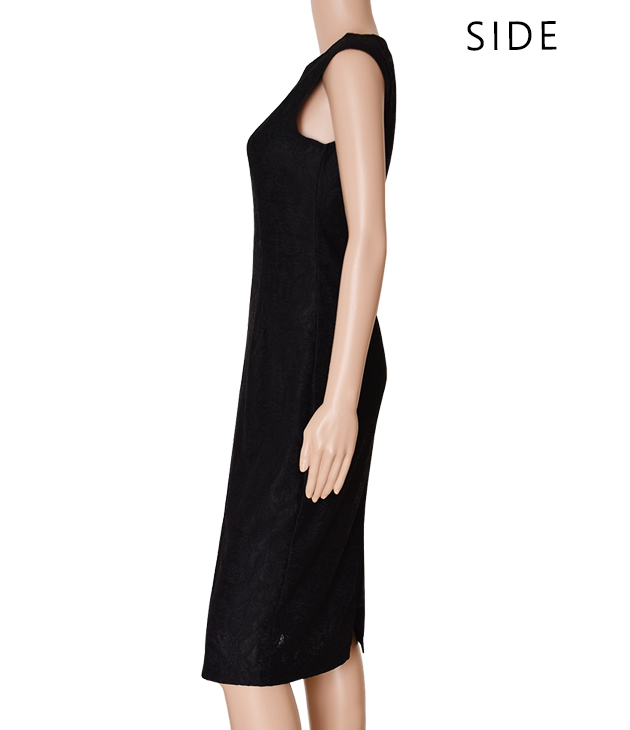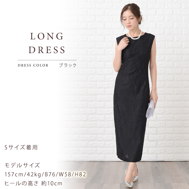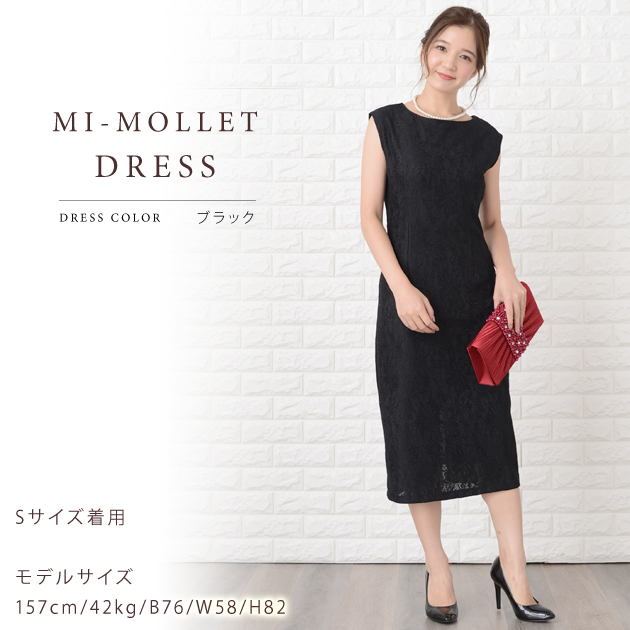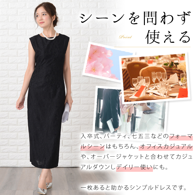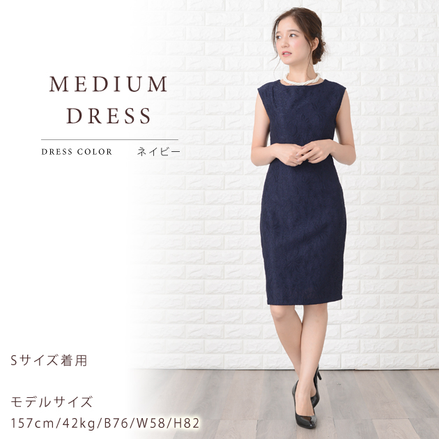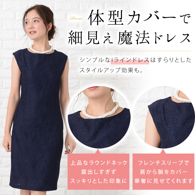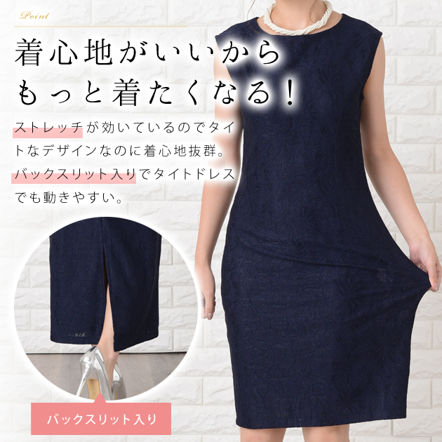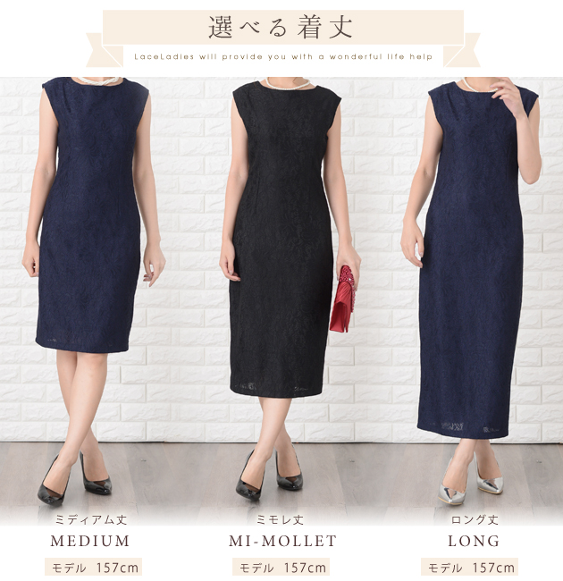 選べる3丈 総レース Iライン ワンピース フォーマル 結婚式二次会 パーティードレス ミディアム丈 膝丈 ロング丈 ミモレ丈 スリム ネイビー ブラック 黒 袖なし お呼ばれ 春 夏 秋 ノースリー