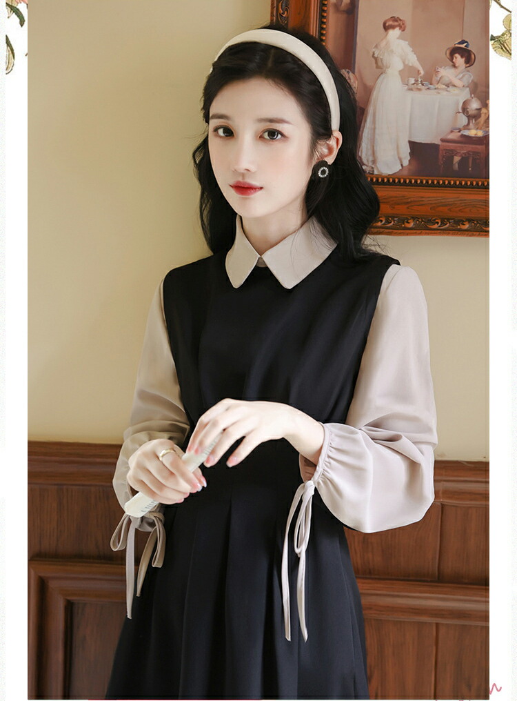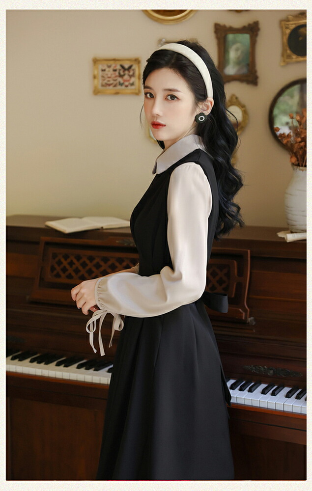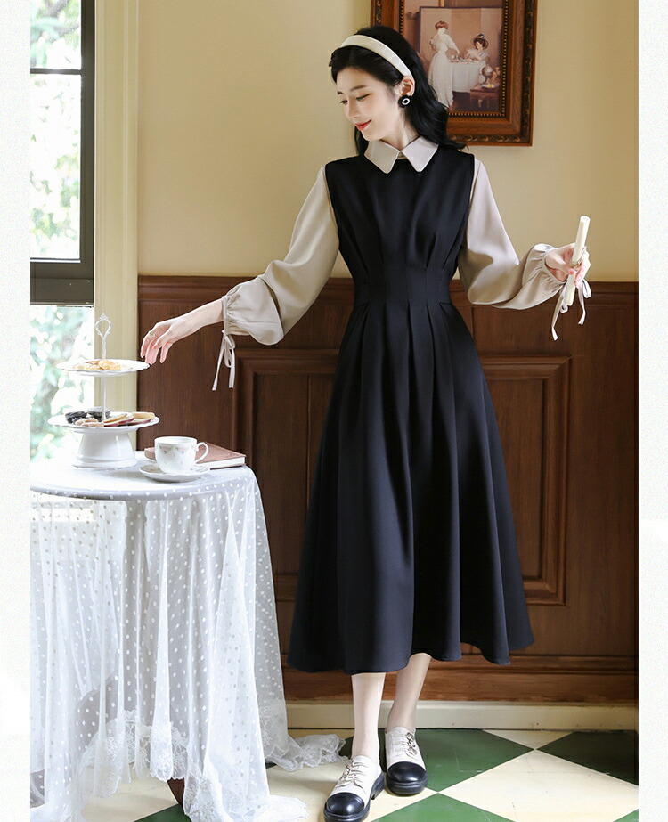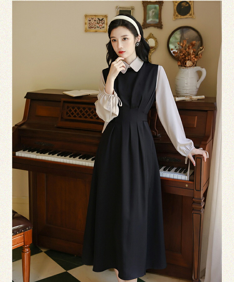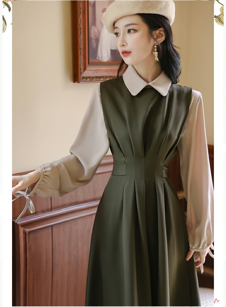 レイヤードミモレ丈韓国女優風ワンピース