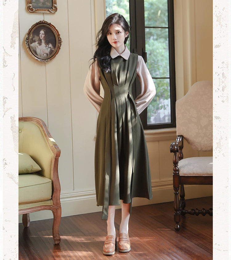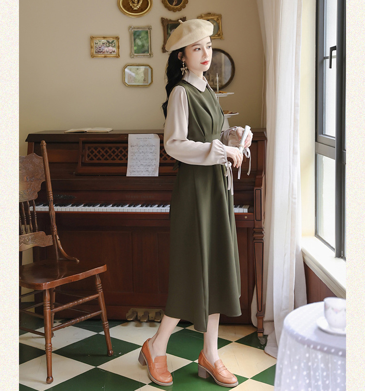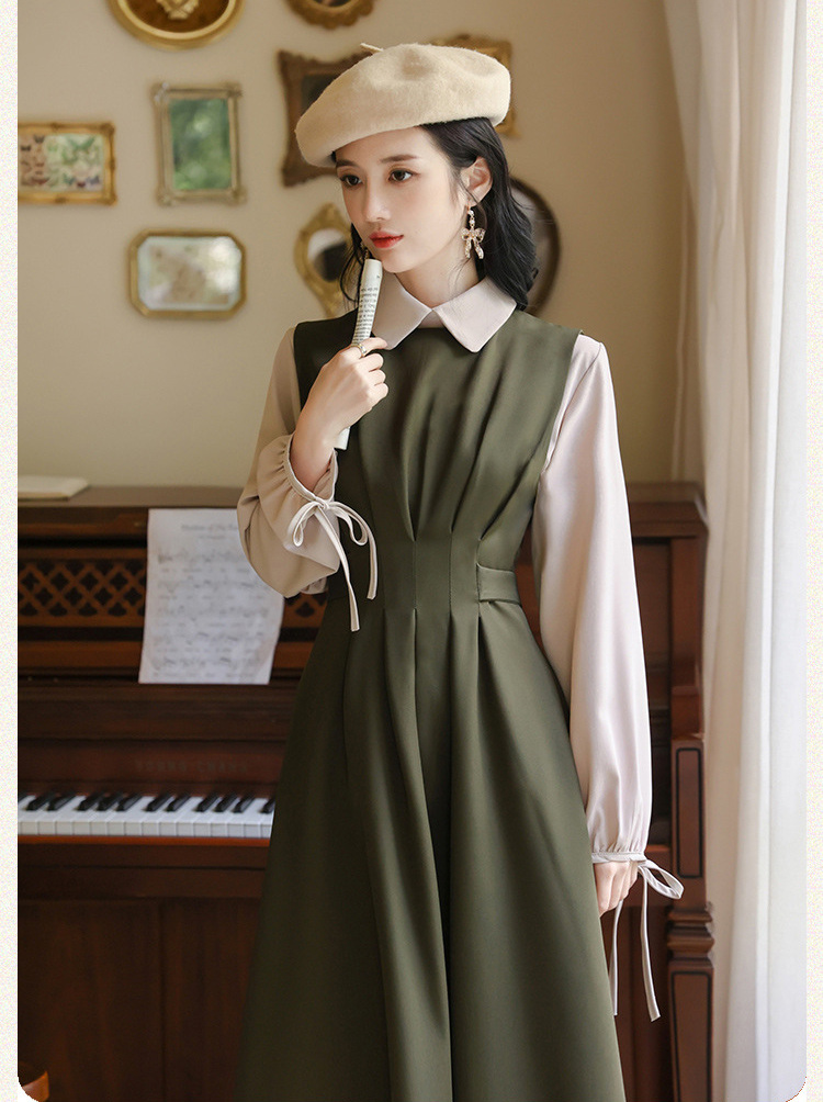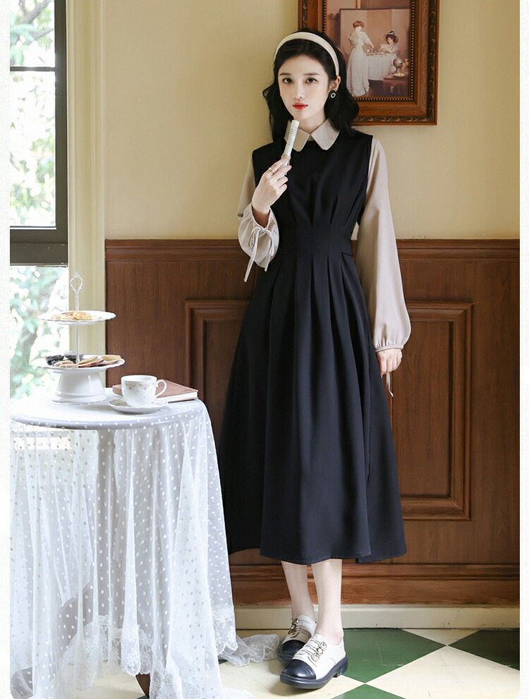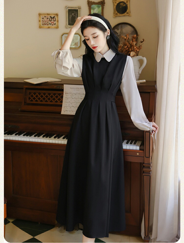 レイヤードミモレ丈韓国女優風ワンピース