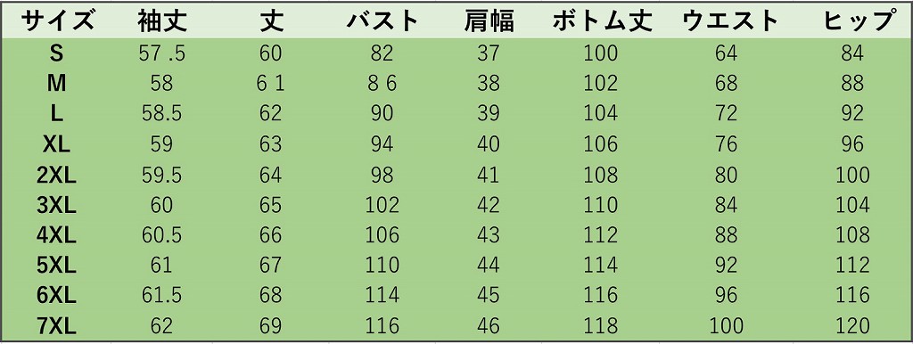 サイズ: S M L XL 2XL 3XL 4XL 5XL 6XL 7XL