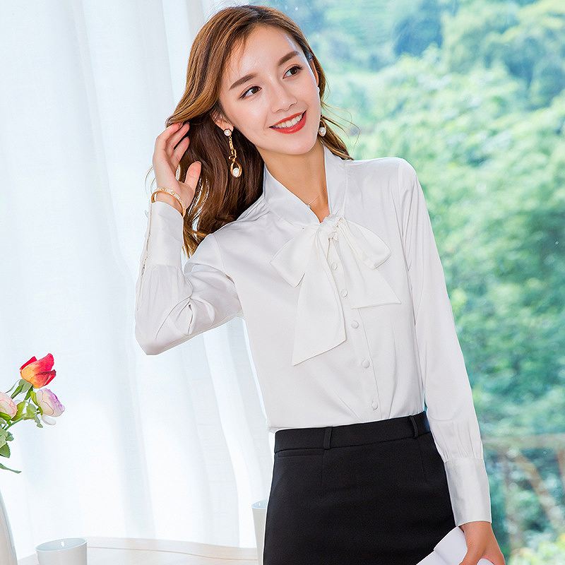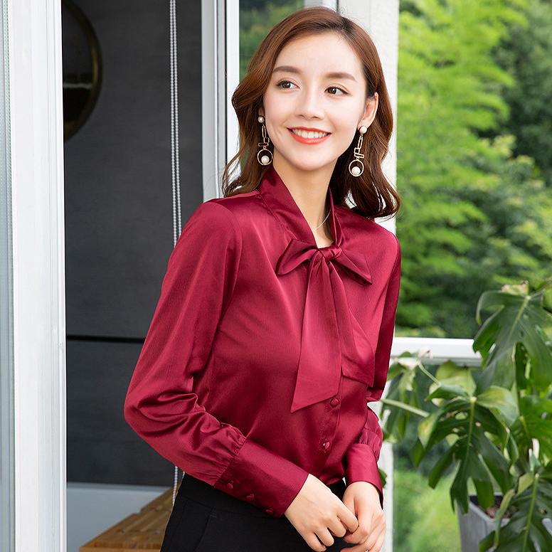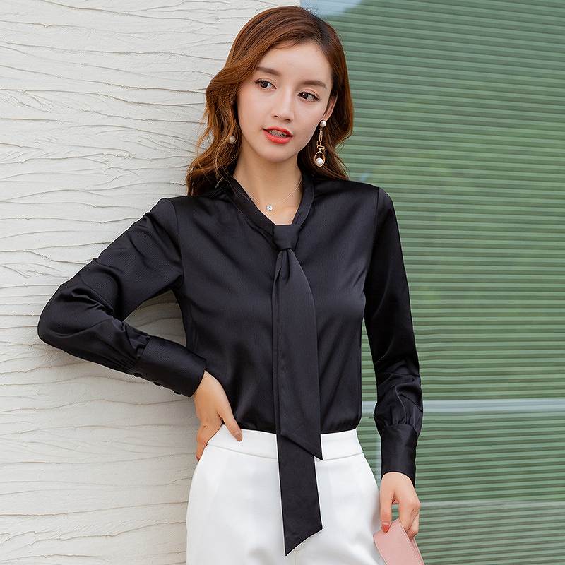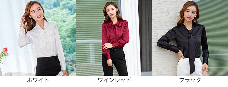 レディース ブラウス 首元リボン ロン