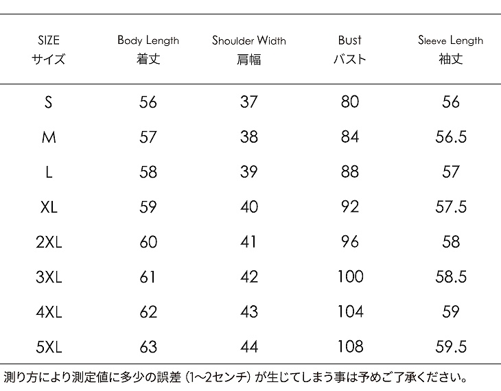 サイズ: S M L XL 2XL 3XL 4XL 5XL