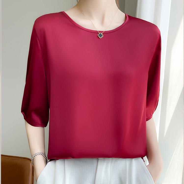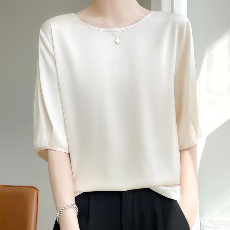 シルク混 半袖tシャツ サテンブラウス