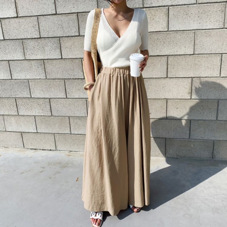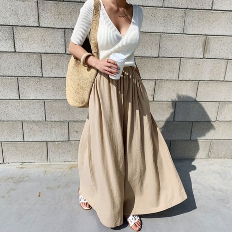 スカートパンツ マキシ丈 春 夏 コットンリネン 可愛い キレイめレディースファッション ボトムス パンツ