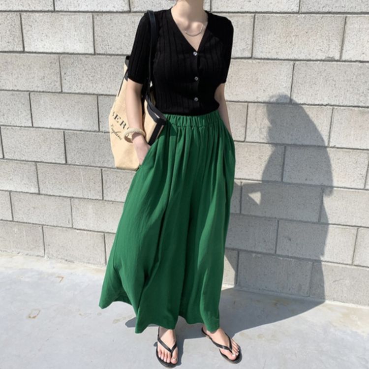 ガウチョパンツ レディース ワイドパンツ リネン スカーチョ スカンツ リネンパンツ 10分丈 春夏 フレアパンツ ロング 綿麻 ウエストゴム ハイウエスト きれいめ 大きいサイズ 大人 かわいい おしゃれ ゆったり ふんわり 無地 涼しい 体型カバー 黒 緑