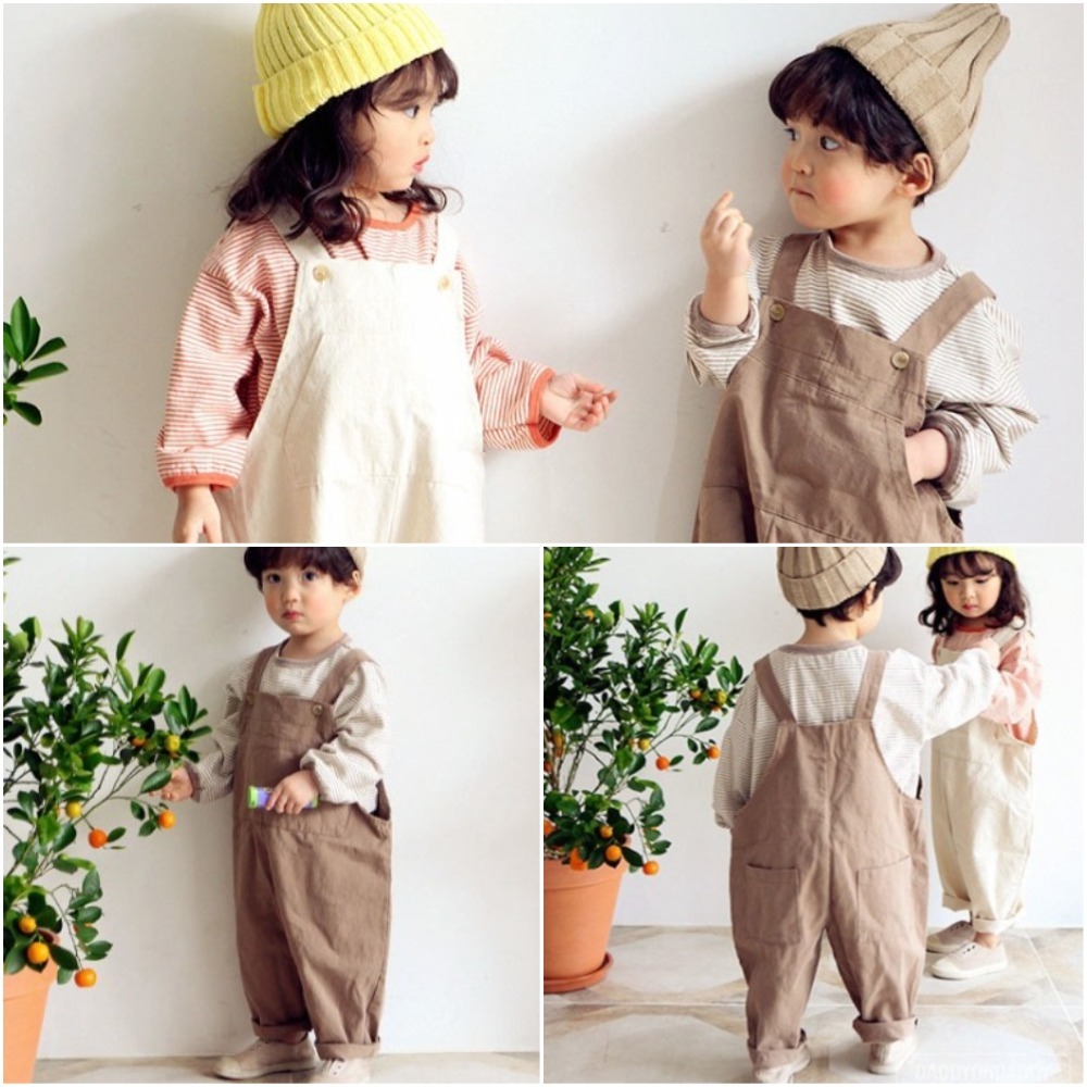 子供 サロペット パンツ オーバーオール キッズ オールインワン 女の子 男の子 つなぎ パンツ 綿 ポケット おしゃれ 可愛い カジュアル 無地 重ね着 ベビー 幼児 幼稚園 保育園 小学生 ユニセックス ベージュ ブラウン 90 100 110 120 130 140cm