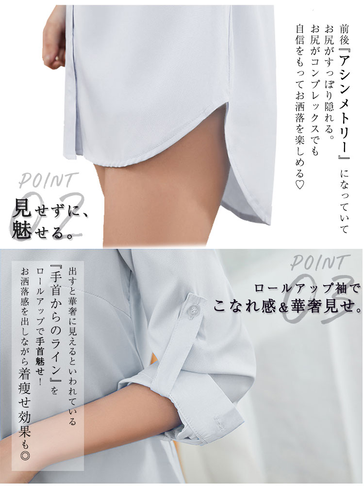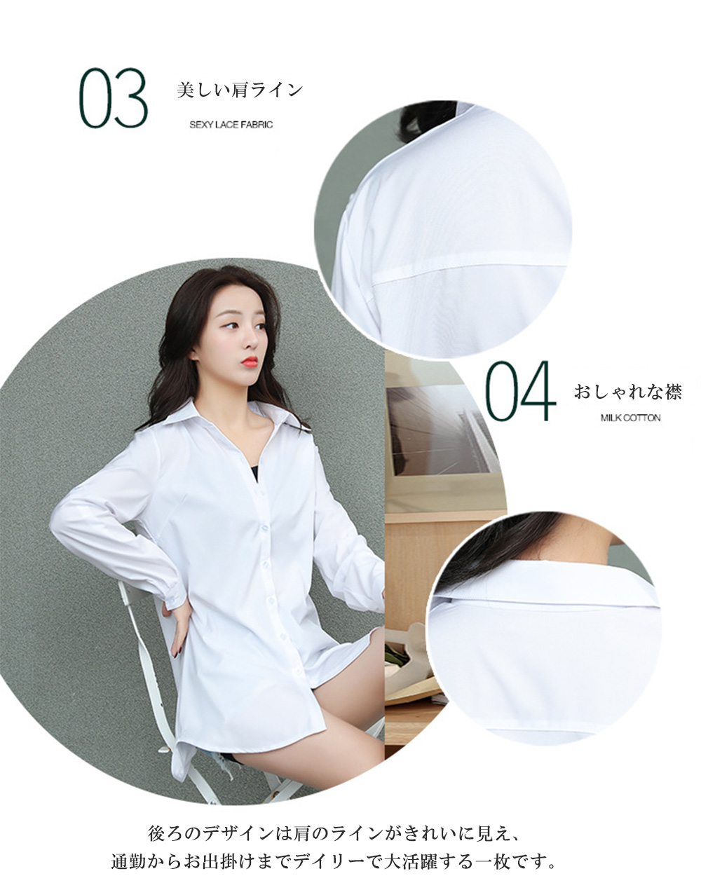 チュニックシャツ 長袖シャツ 春夏 秋冬 ロングシャツ Yシャツ シワになりにくい トップス オーバーサイズ スリム 上品 無地 事務服 リクルート ビジネス 就活 20代 30代 40代 50代