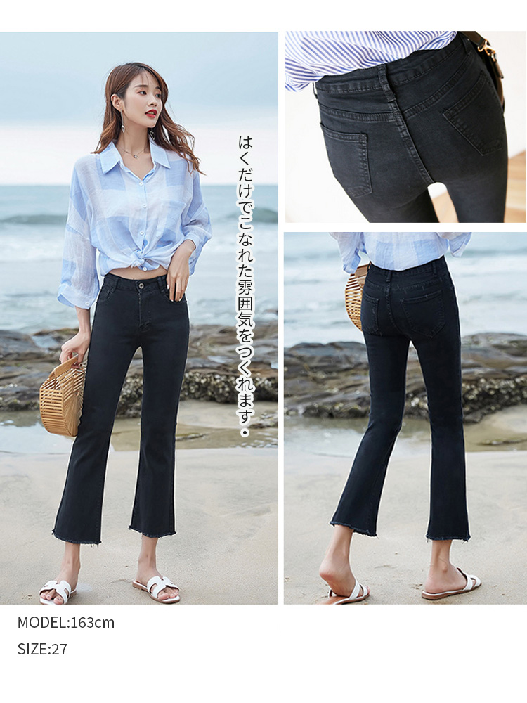 デニム パンツ 9分丈 春 夏 秋 冬 フリンジ アンクル丈 ボトムス スリム パンタロン 切りっぱなし 大人 カジュアル きれいめ 可愛い 美脚 20代 30代 40代