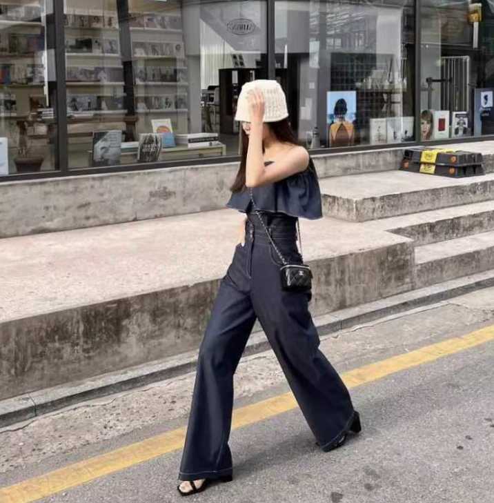 デニムパンツ ビジュー付き