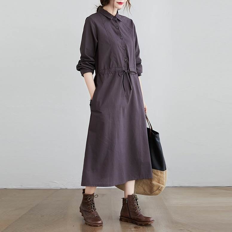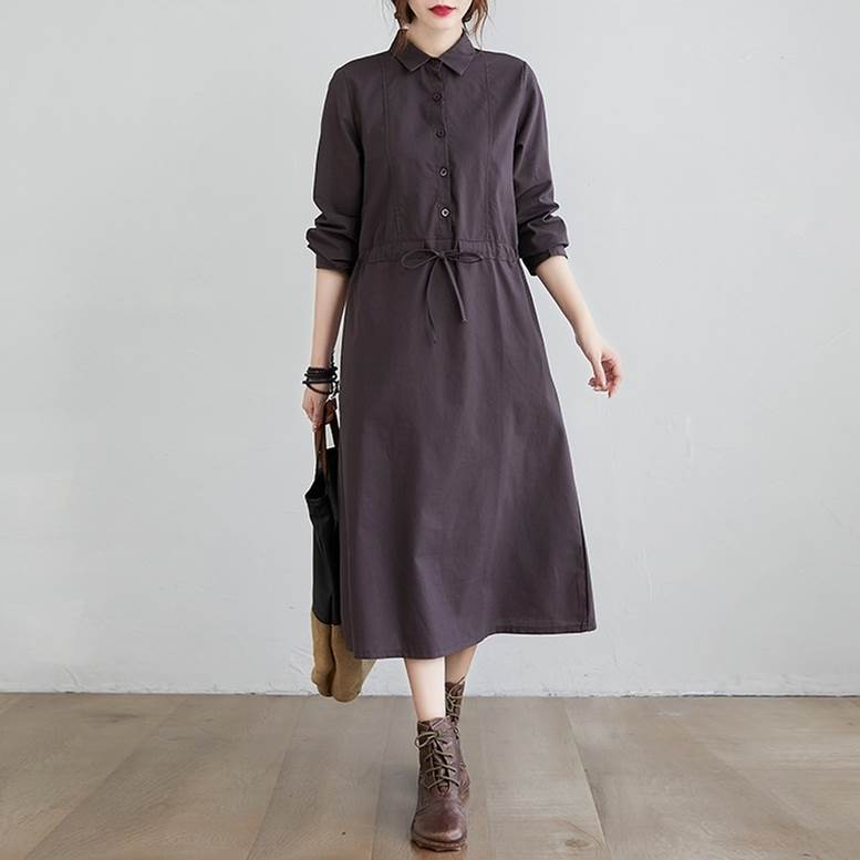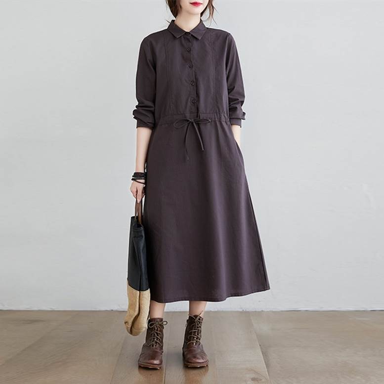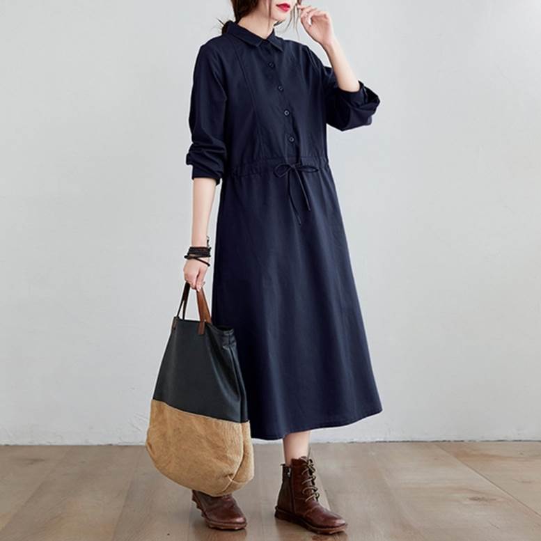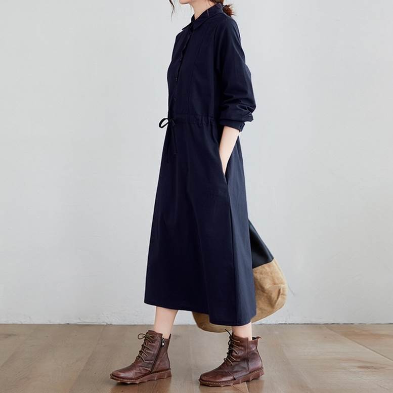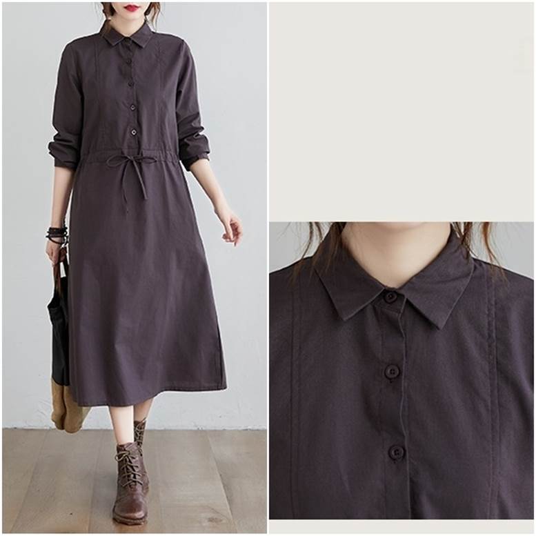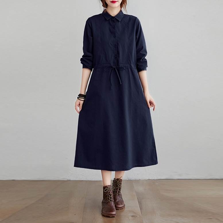 シャツワンピース ワンピース レディース リネンライクドレス ロングワンピース ひざ下丈 長袖 襟付き ウエストリボン ワンピ ワンマイルコーデ フェミニン 普段着 紺 ネイビー 茶色 ブラウン 大人可愛い きれいめ 上品 ガーリー ルーズ エレガント フォーマル 春 夏 秋 冬 二次会 オフィス ビジネス OL 通勤 学生 通学 デート お出かけ パーティー イベント 女子会 休日 アウトドア 体型カバー 普段使い 定番 トレンド ゆったり インスタ映え ベイクドカラー 大人カラー ニュアンスカラー