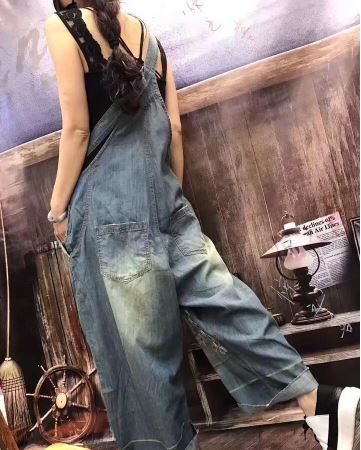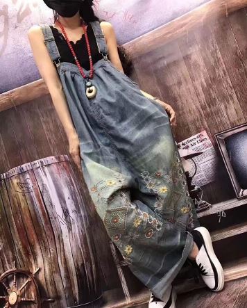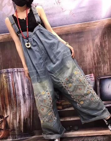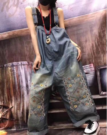 花柄 刺繍 デニムパンツ オーバーオー