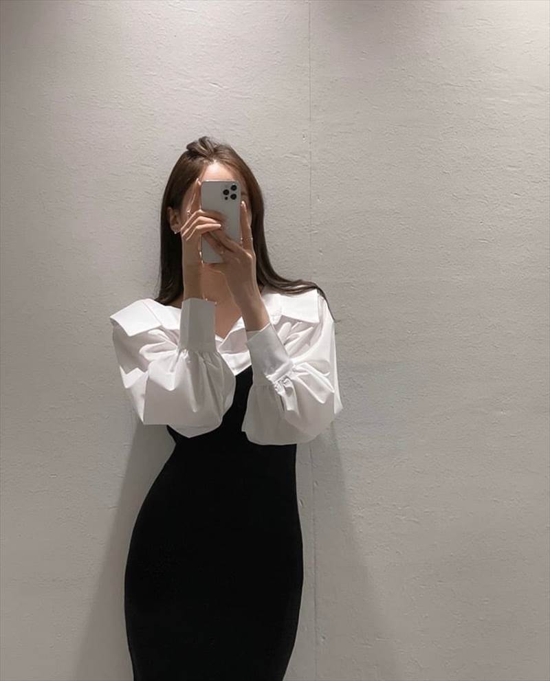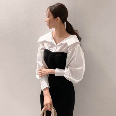 シアースリーブ ドッキングシャツ ボウタイシャツブラウス