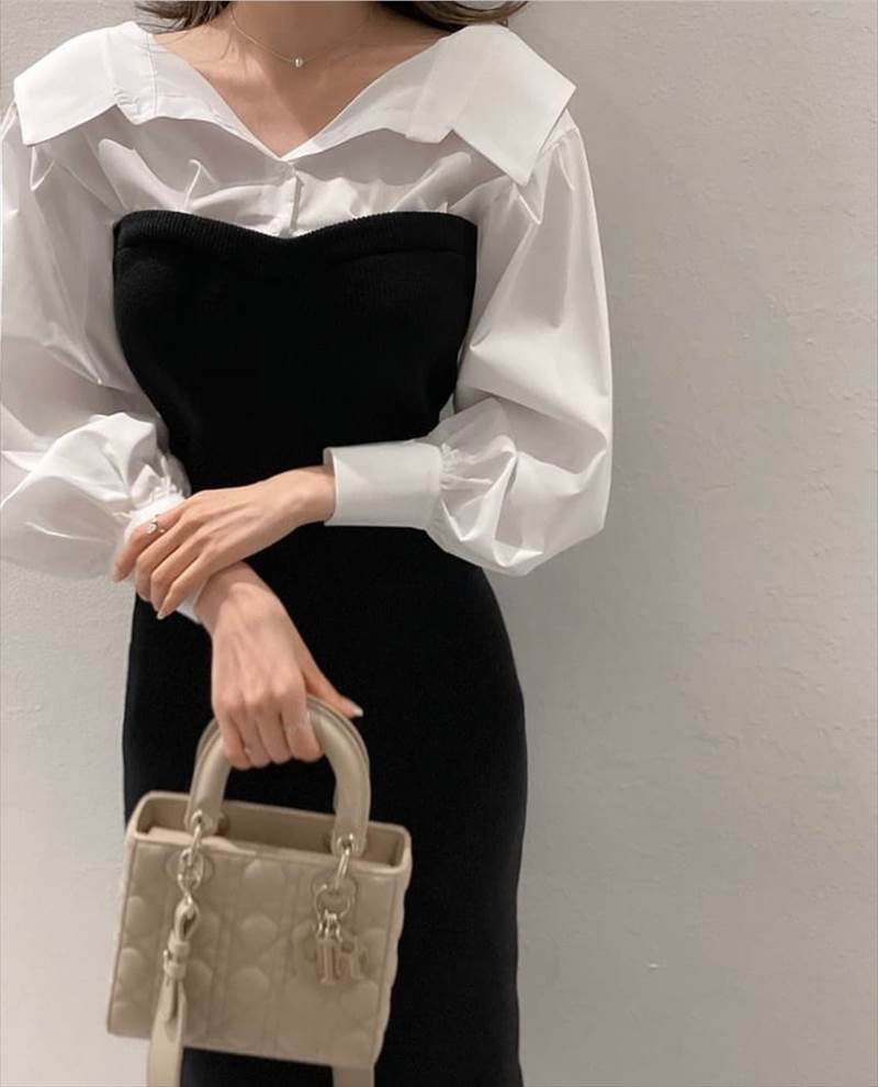 ワンピース 重ね着風 ドッキング 切り