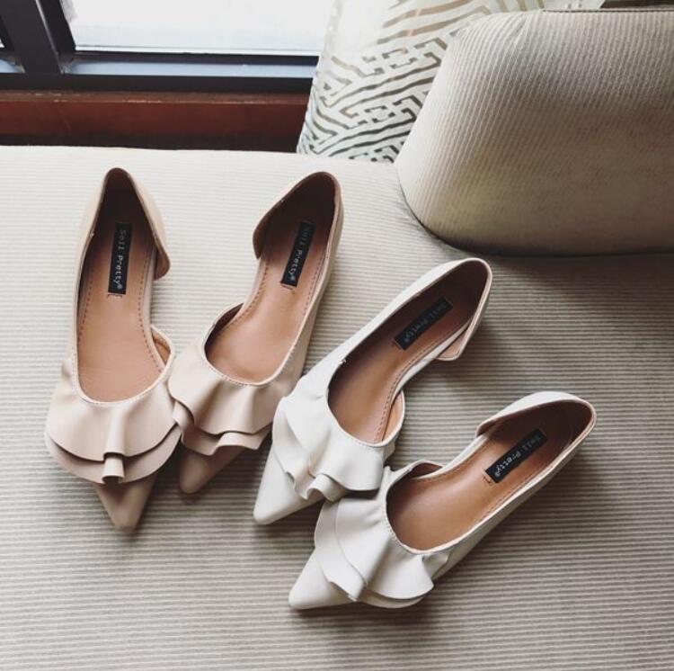 フリルパンプス フラットシューズ レデ