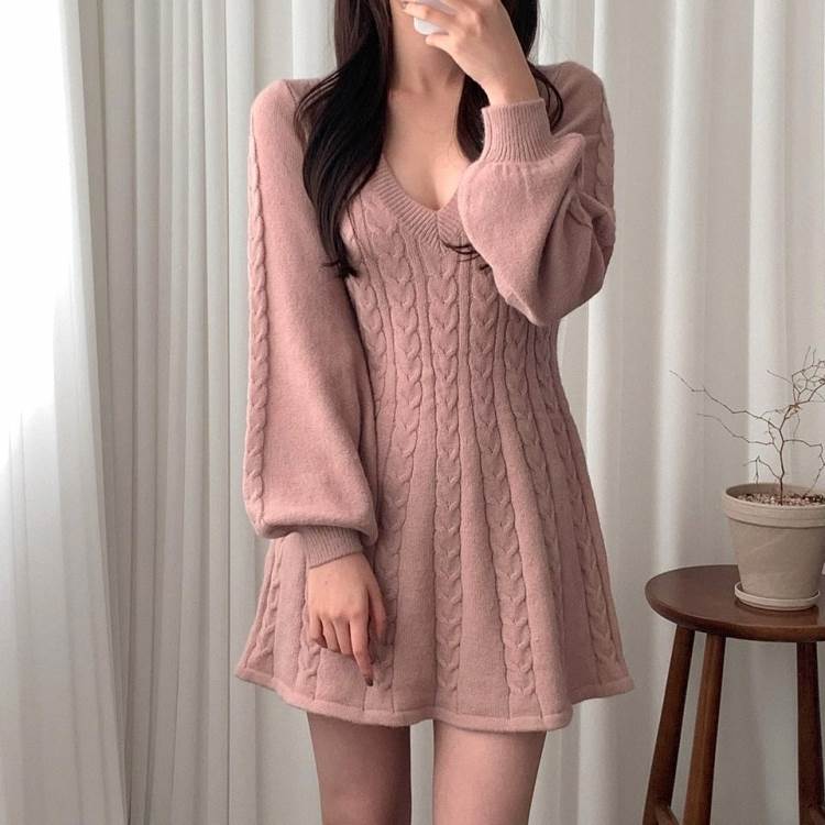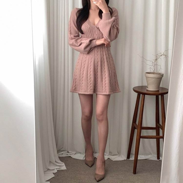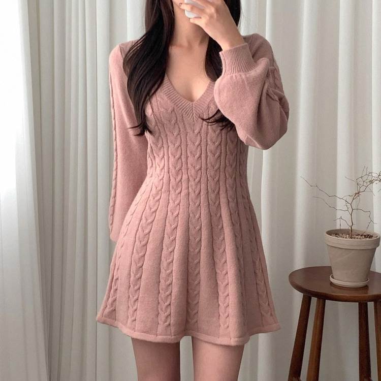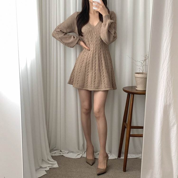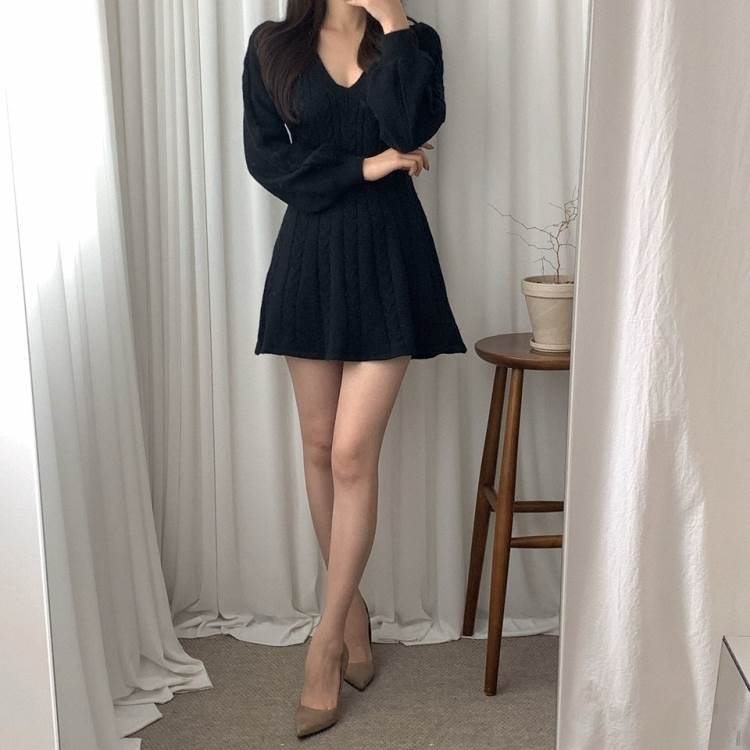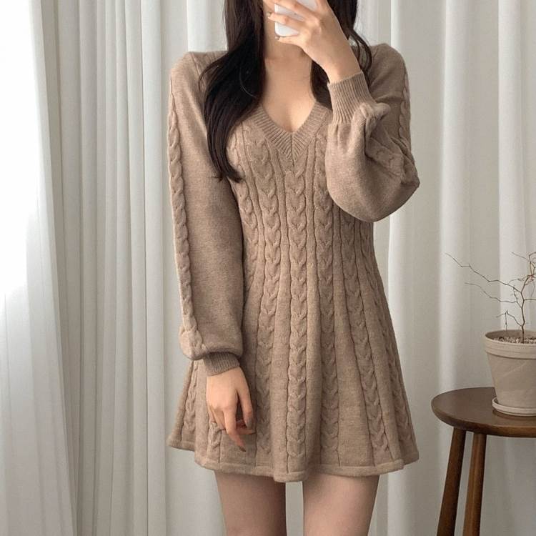 ワンピース ニット ケーブルニット ミ