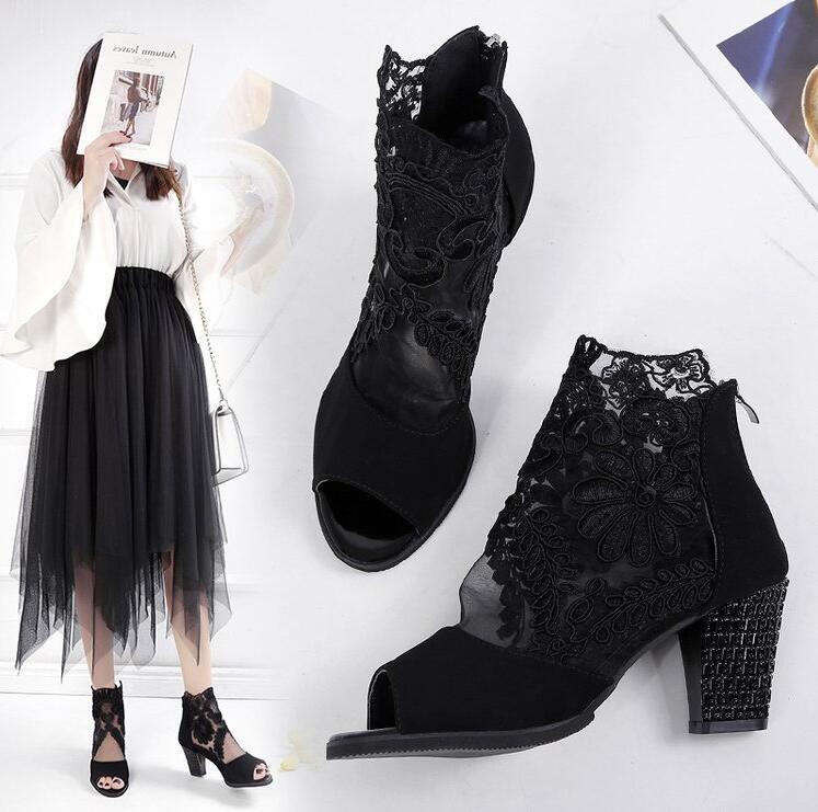 サマーブーツブーツサンダルブーティー花