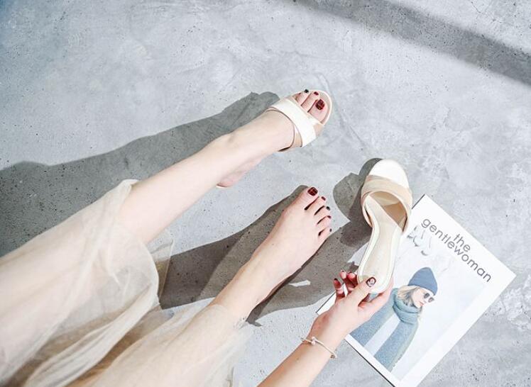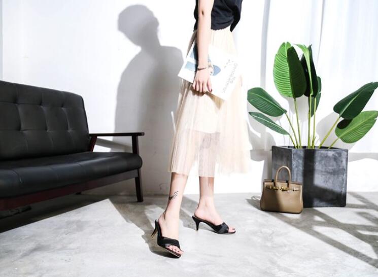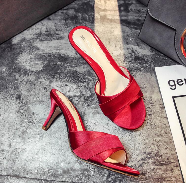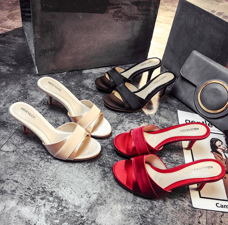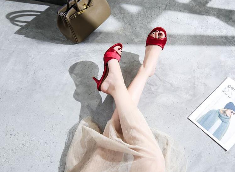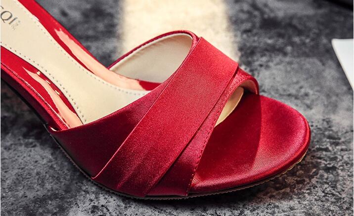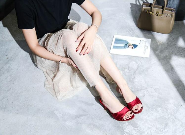 長脚効果サテンミドルヒールサンダルレデ