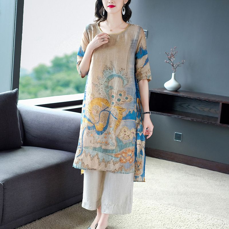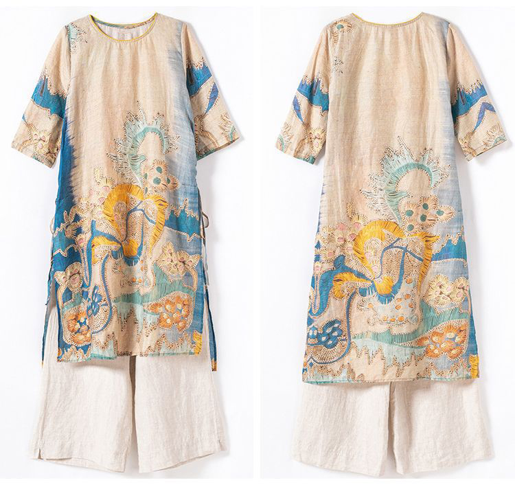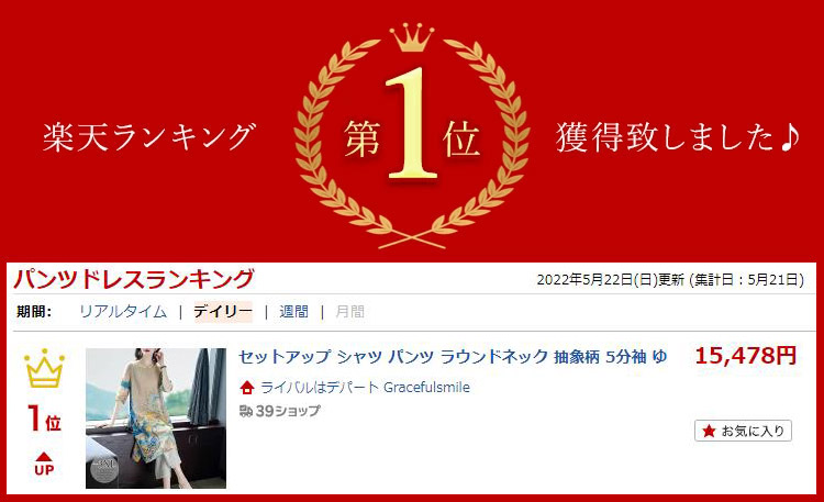 感想 サラリと着れる涼し気なセットアップ。ウエスト横の紐を絞ればキュッとした印象に♪