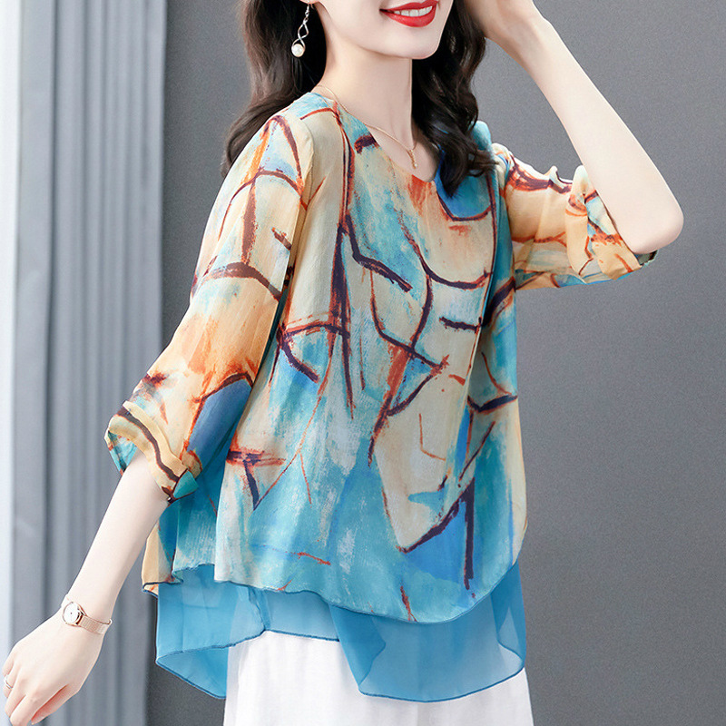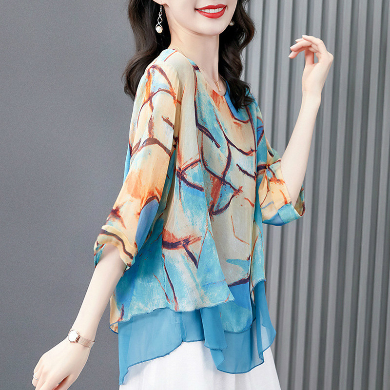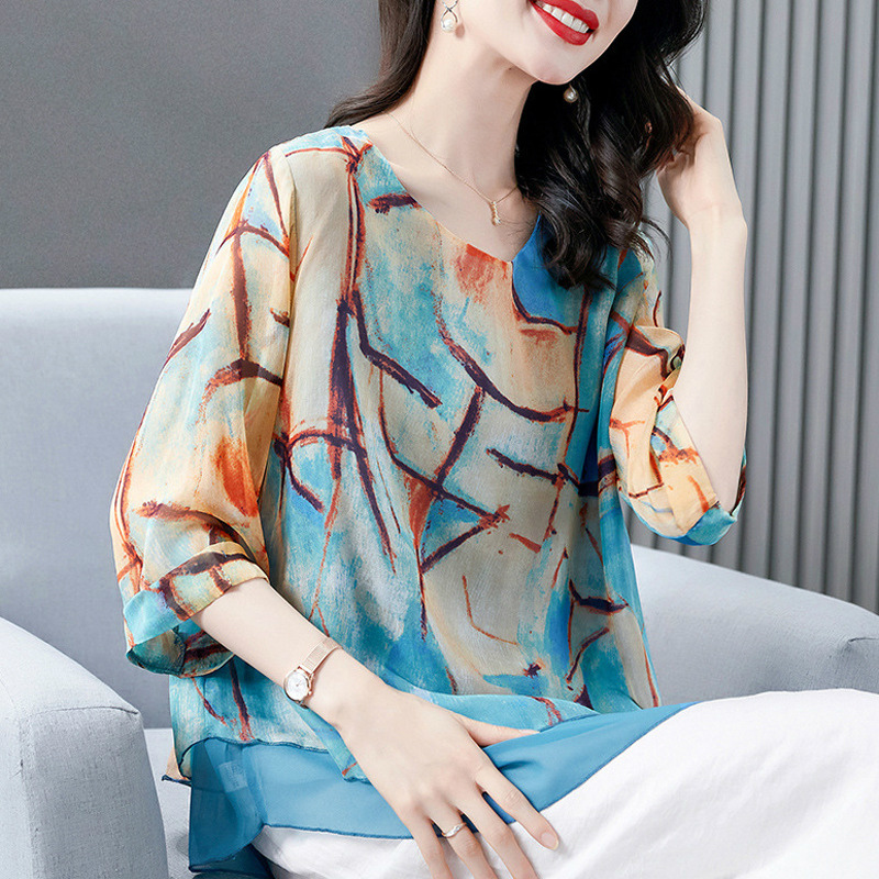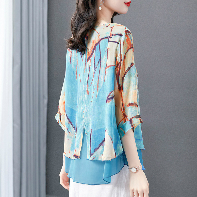 お顔周りをパッと華やかに魅せる色使い♪ゆったりとしながらもレイヤード風のデザインが大人女性らしいきちんと感を演出