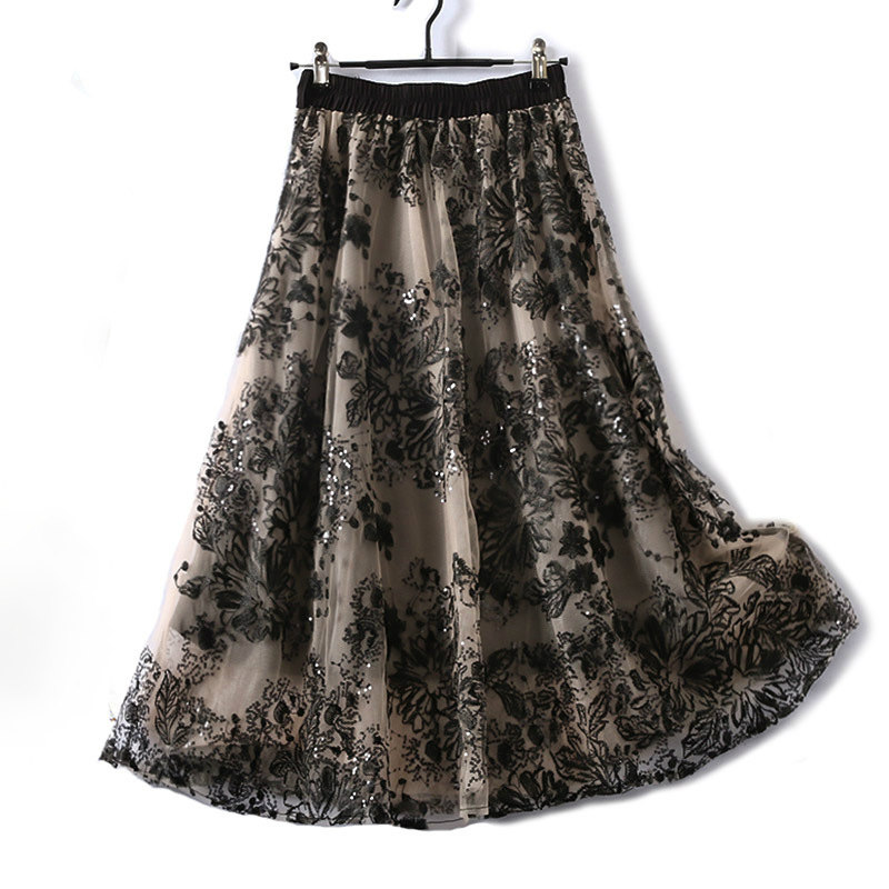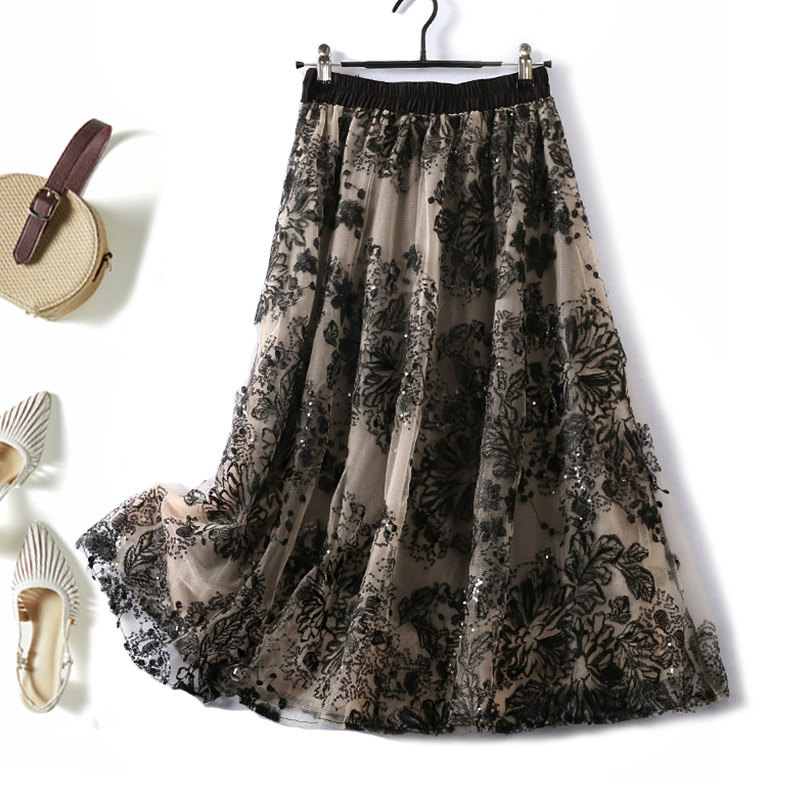 スカート ロング レディース 秋 フォーマル 刺繍レース ミモレ丈 きれいめ フリーサイズ ブラック 花柄 総柄 透け感 30代 40代 50代 60代 70代 通勤 二次会 お呼ばれ 大人 春 夏