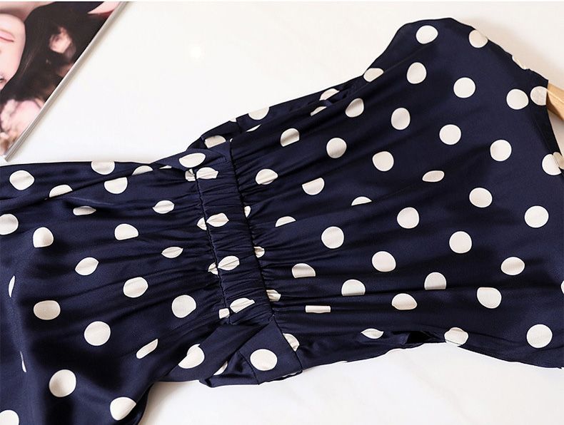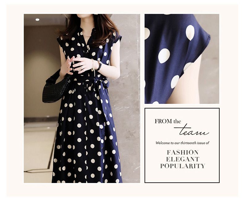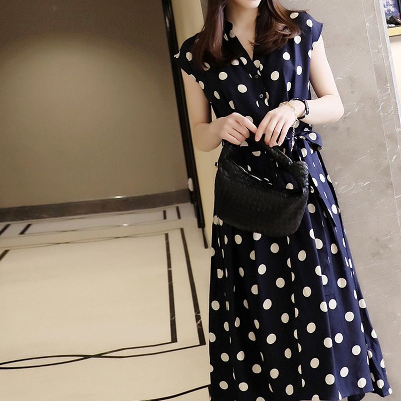 ワンピース レディース ノースリーブ ドット柄フィッシュテール 袖あり きれいめ 春 夏 秋大きいサイズ 薄手 30代 40代 50代 60代 ファッション おしゃれ 上品 大人可愛い お呼ばれ かわ