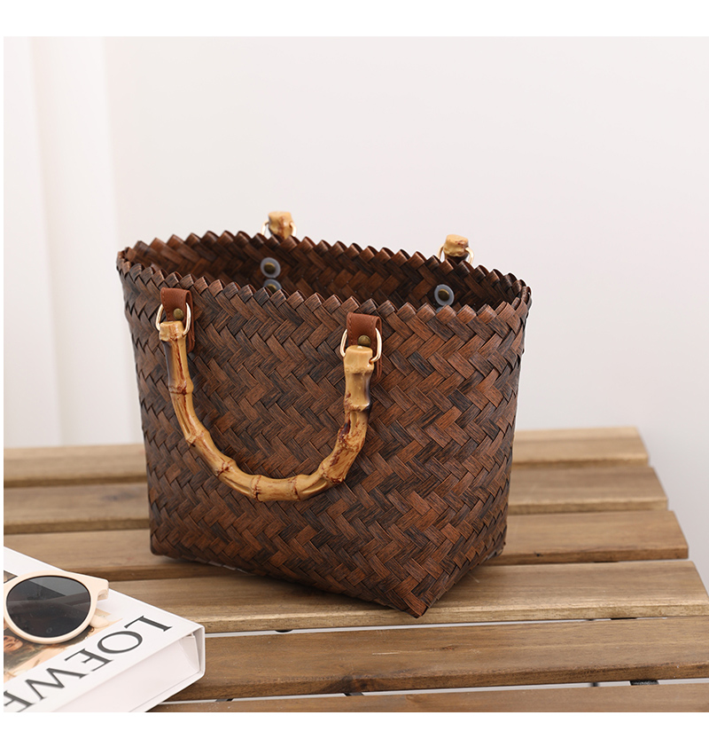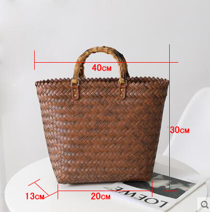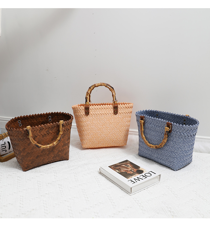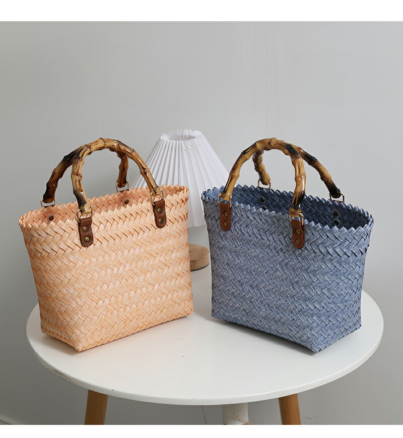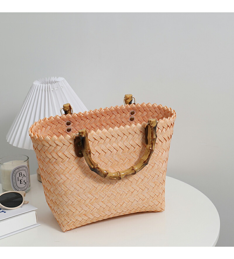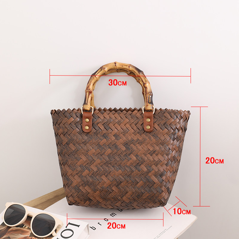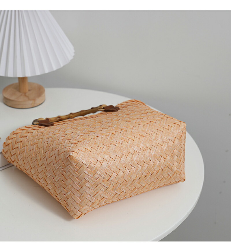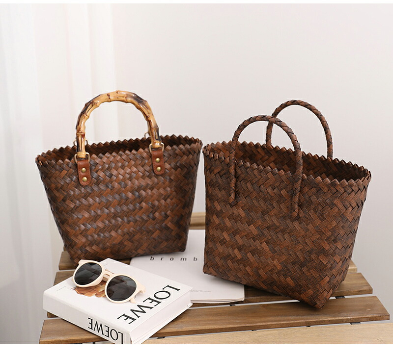 復古 竹の節提手 ハンドバッグ 草編みバッグ