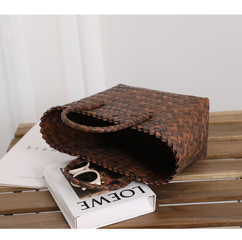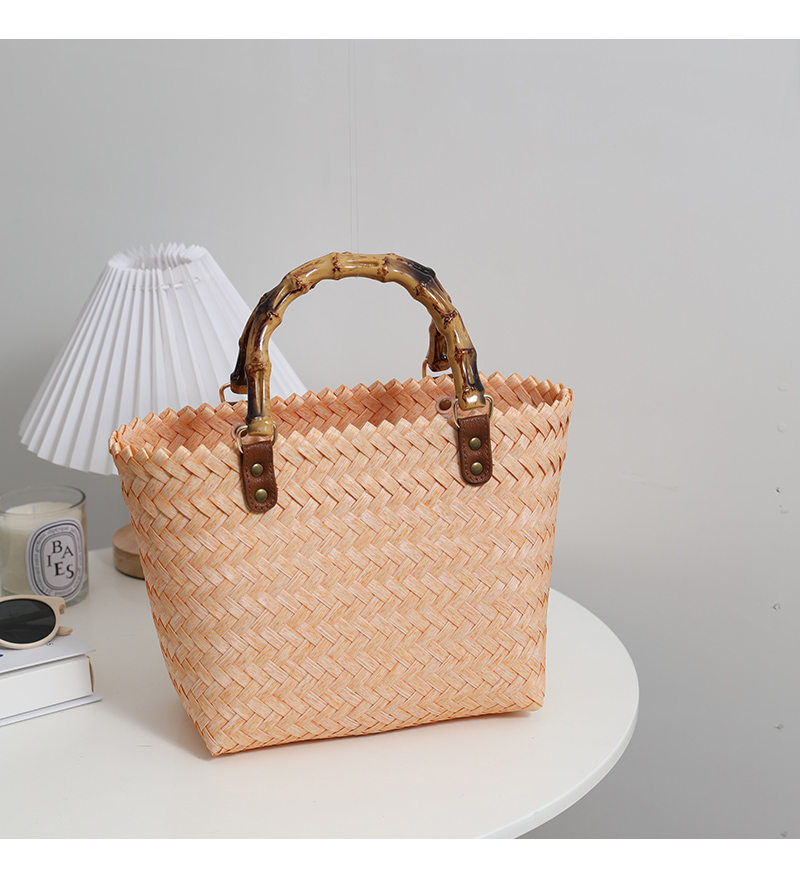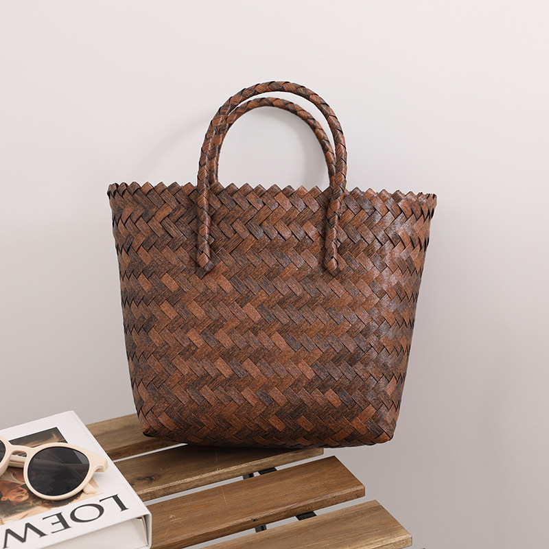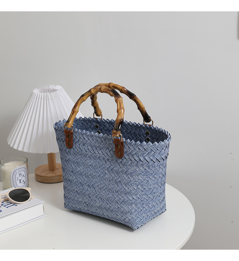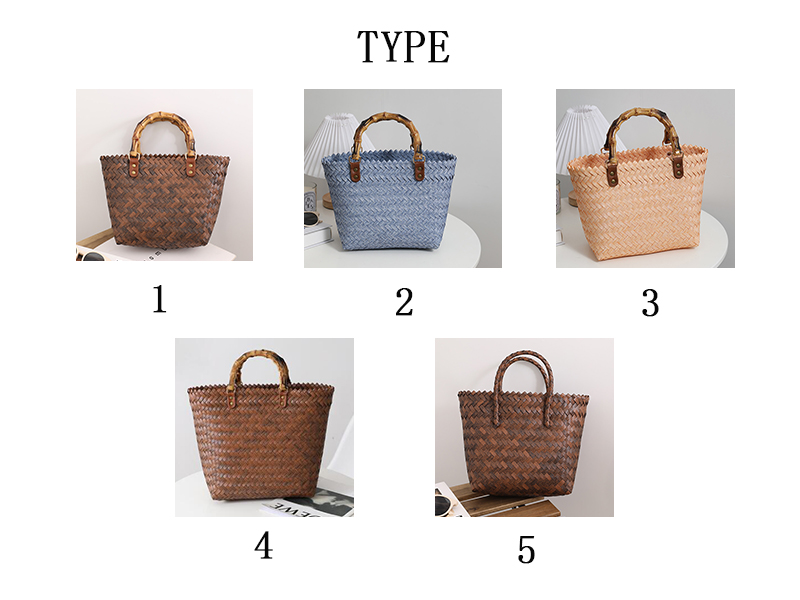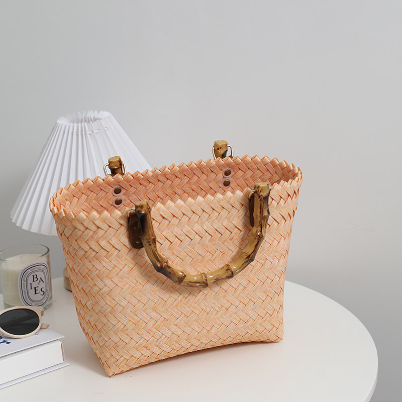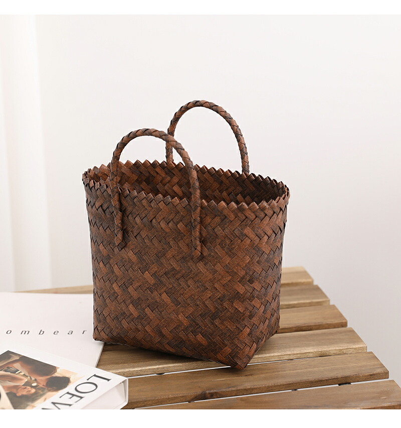 復古 竹の節提手 ハンドバッグ 草編みバッグ