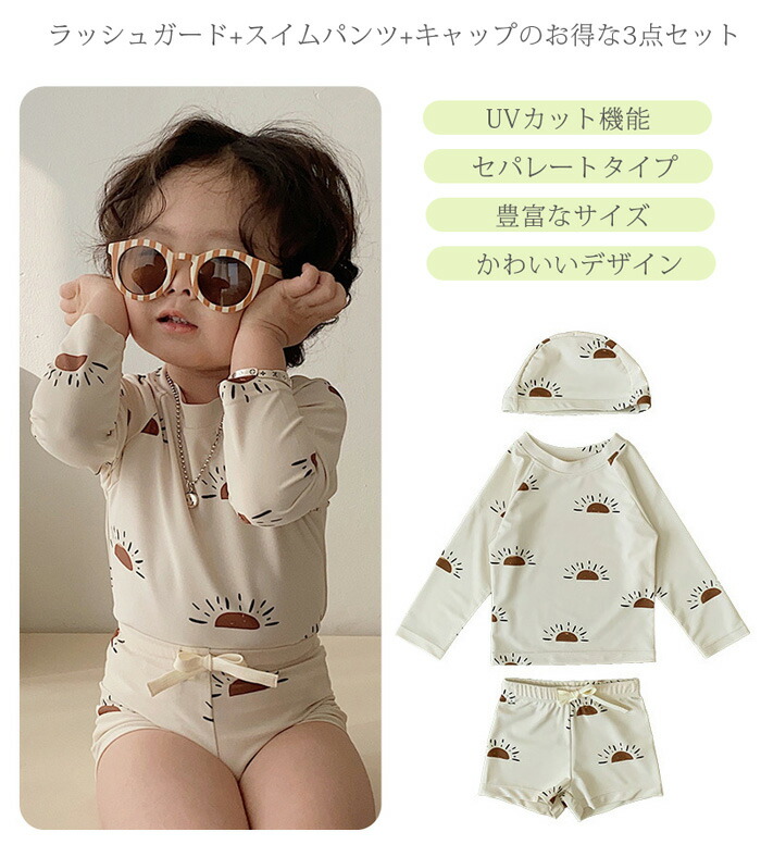 3点セット キッズ ベビー 水着 長袖 ラッシュガード 夏 男の子セパレート 水着 上下セット 子ども 子供 動きやすい 水着 ジュニア 水遊び プール UVカット UPF50+