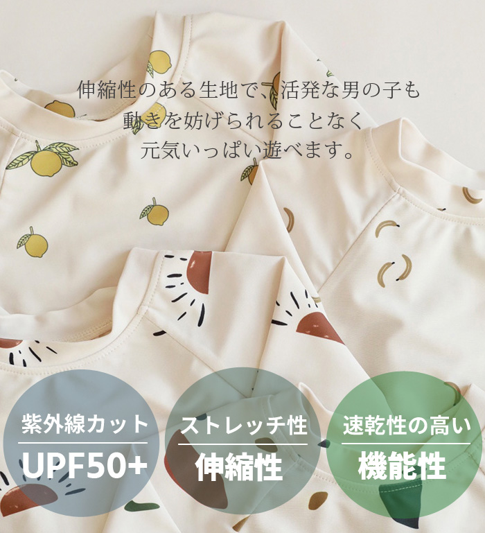 商品名 こちらは、長袖のラッシュガードとハーフパンツがセットになっています。