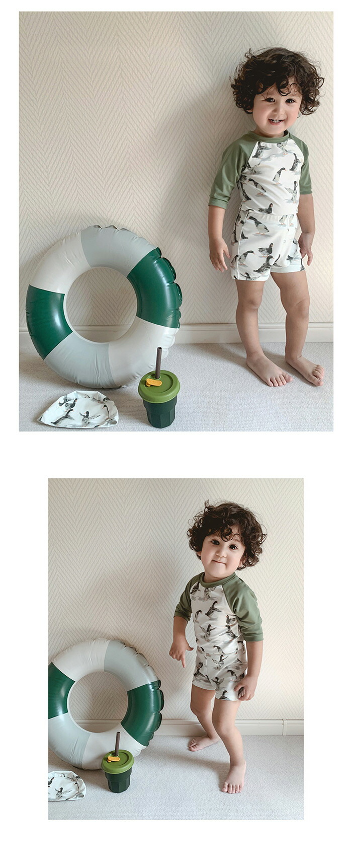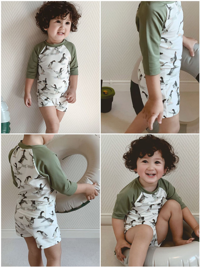 商品名 こちらは、長袖のラッシュガードとハーフパンツがセットになっています。