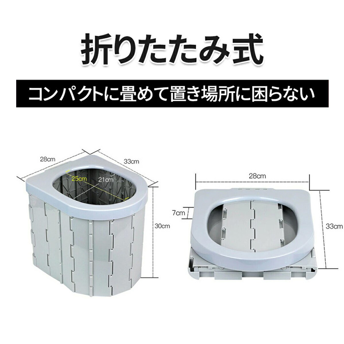 折りたたみ時のサイズ:33cm×28cm×7cmセット内容 折り畳み式ポータブルトイレ本体×1