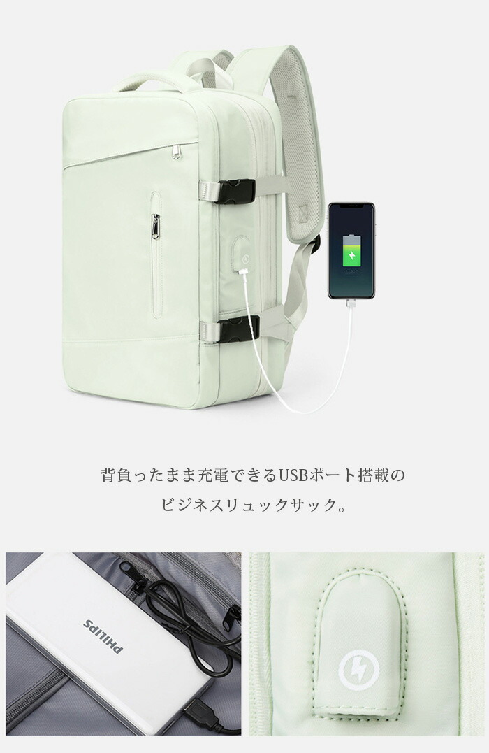 【USBポート付き】背負ったまま充電できるUSBポート搭載のビジネスリュックサック。
