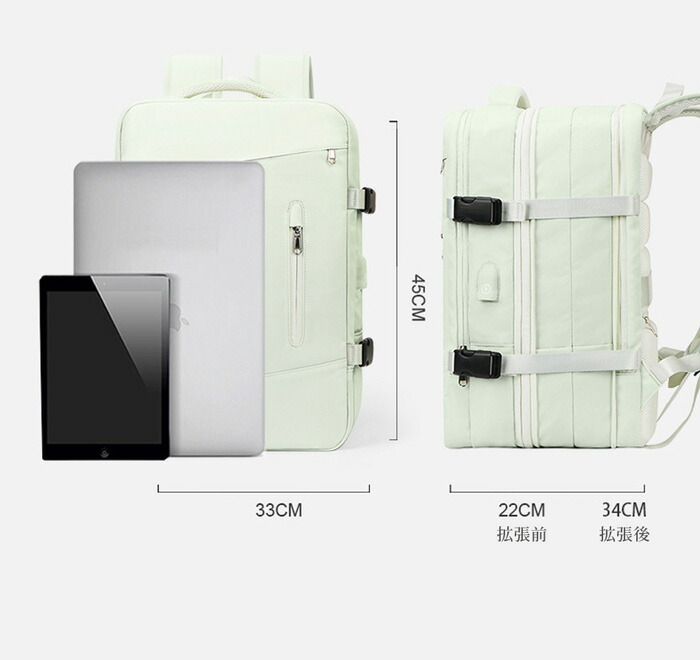 【出張や旅行に最適】3-4泊の旅行や出張ならこれひとつでOK!軽くてかさばらないサイズ感、持ち運びやすい。日常の通勤や通学にも大活躍できる拡張機能付きバックパック。