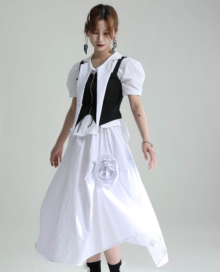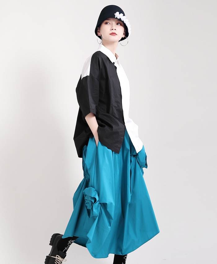 シアースリーブ ドッキングシャツ ボウタイシャツブラウス