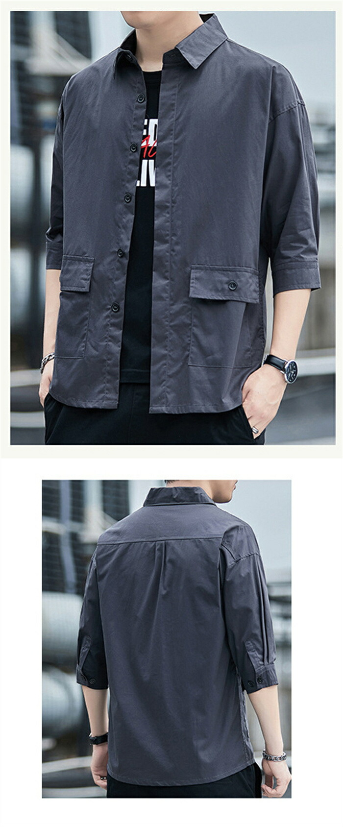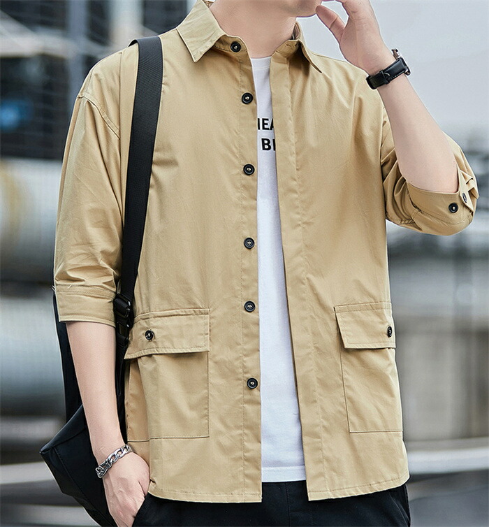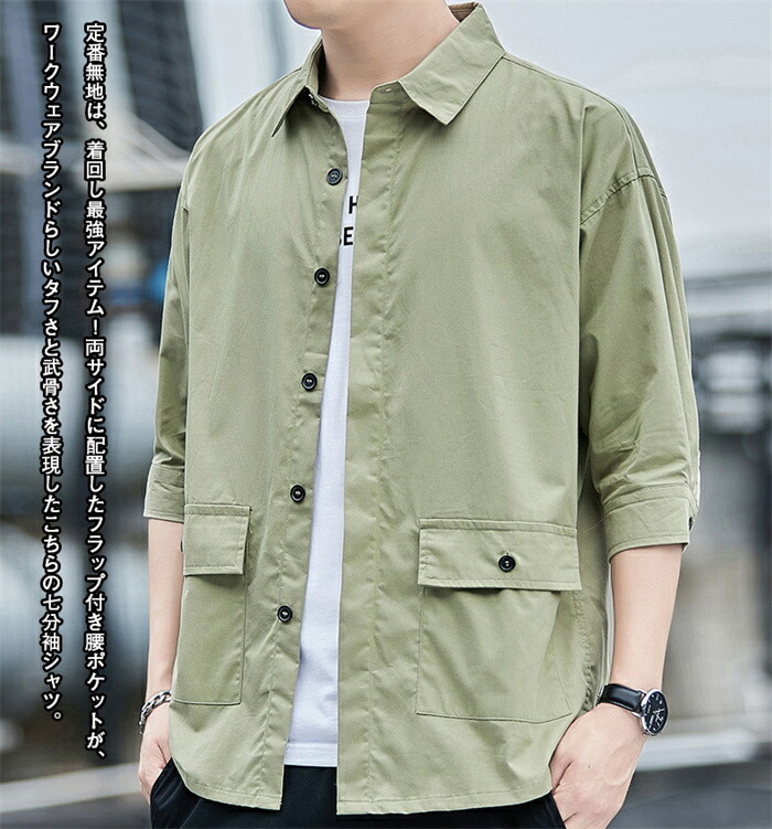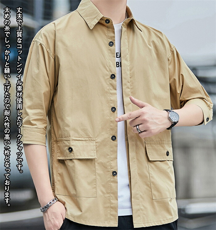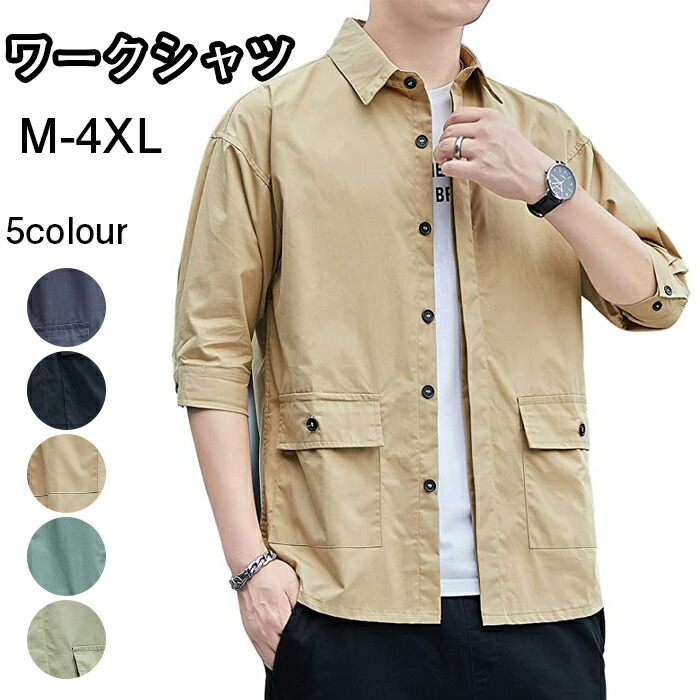 ワークシャツ メンズ 5分袖 シャツ