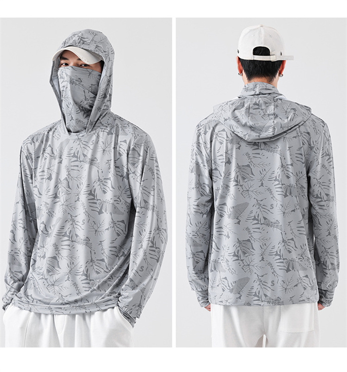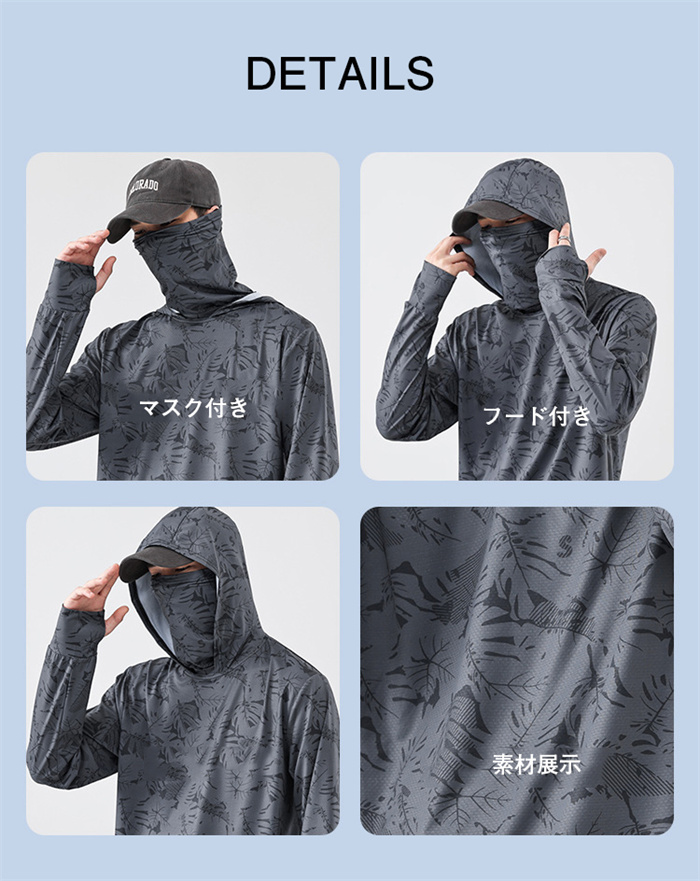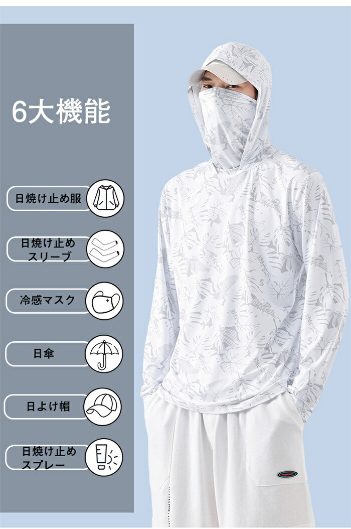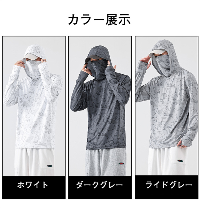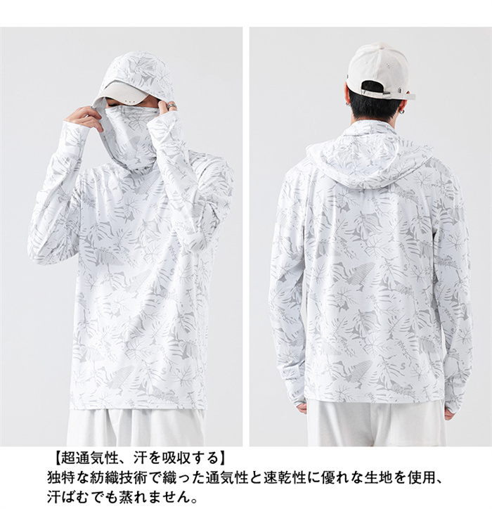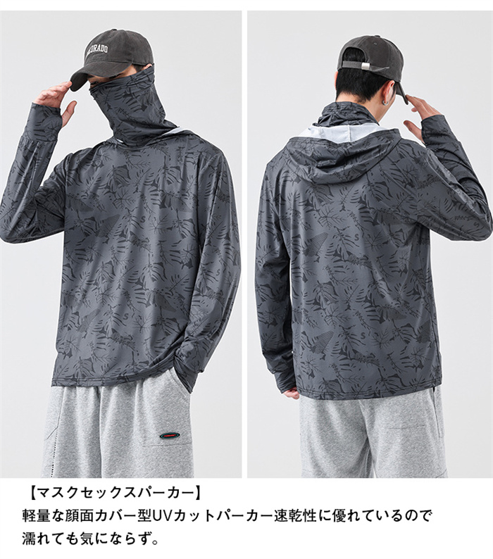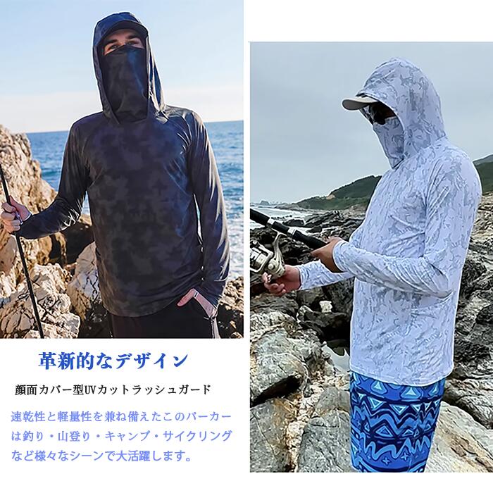 マスク、フードが一体になっていて、日焼け対策にバッチリ 革新的なデザイン 顔面カバー型 UVカットパーカー 父の日 プレゼント 実用的 山登り 釣り 大きいサイズ