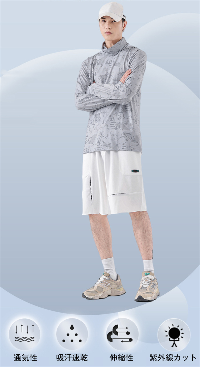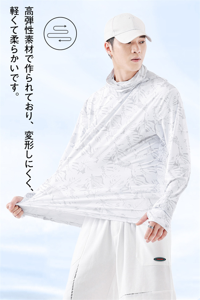 Item Information商品紹介 今夏のアウトドア活動に最適な「ラッシュガード メンズ 長袖 パーカー」は、顔面をカバーするデザインでUVカット機能を備え、紫外線からしっかりと保護します。接触冷感技術により、肌に触れると涼しさを感じることができ、暑い日のアクティビティにぴったりです。速乾性と軽量性を兼ね備えたこのパーカーは、水着としても活用可能で、ビーチやプール、キャンプなど様々なシーンで大活躍します。