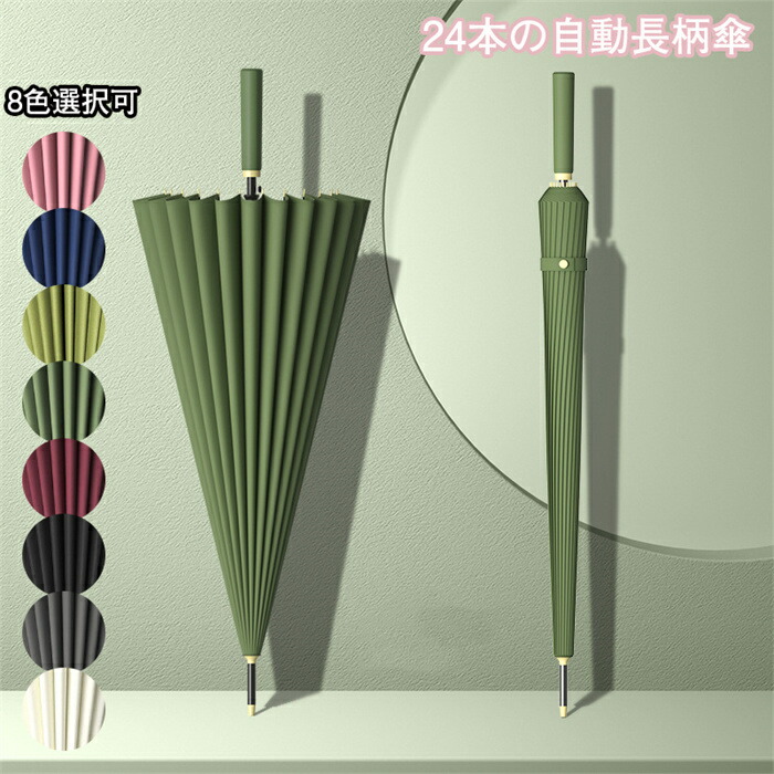 長傘 24本の自動長柄傘 大型 メンズ 強化防風 厚手のビジネス傘 8色選択可