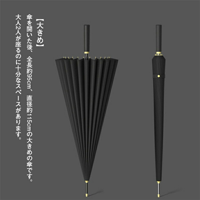 Item Information商品内容 長傘素材 ポリエステル/ビニールカラー ネイビー/ブラック/ワインレッド/グレー/グリーン/ダークグリーン/ホワイト/ピンクサイズ 具体的なサイズが写真通りにご覧下さいませ。製品について 【大きめ】傘を開いた後、全長約95cm、直径約115cmの大きめの傘です。 大人2人が座るのに十分なスペースがあります。
