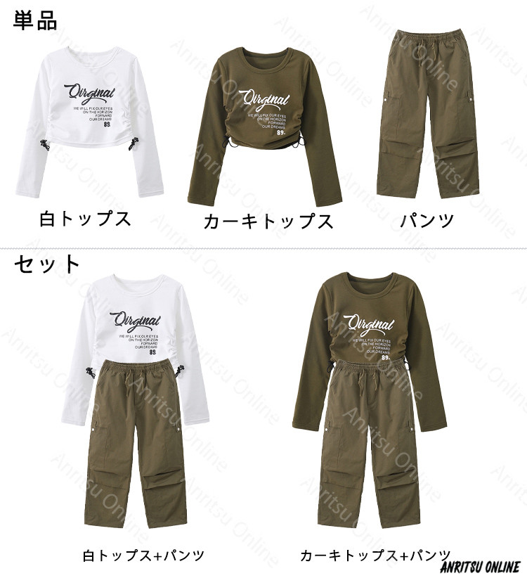 Key0: 白トップスのみ カーキトップスのみ パンツのみ 白トップス+パンツ カーキトップス+パンツ