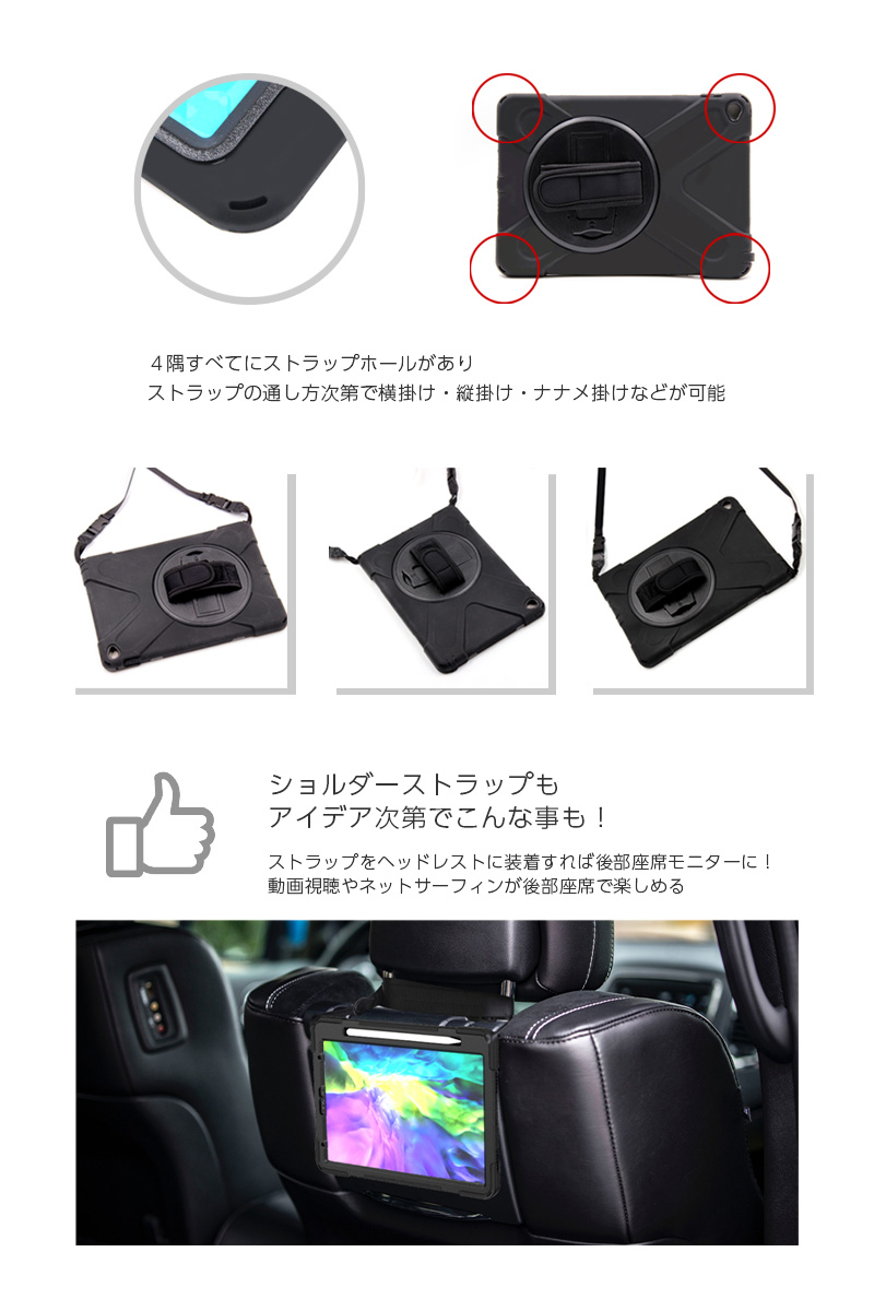 ストラップをヘッドレストに装着すれば後部座席モニターに
