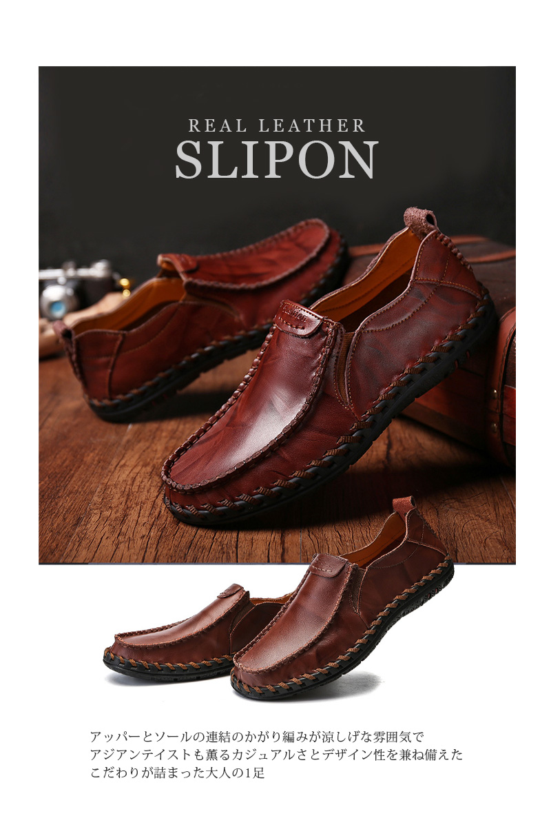 メンズ レザー スリッポン【靴 シュー