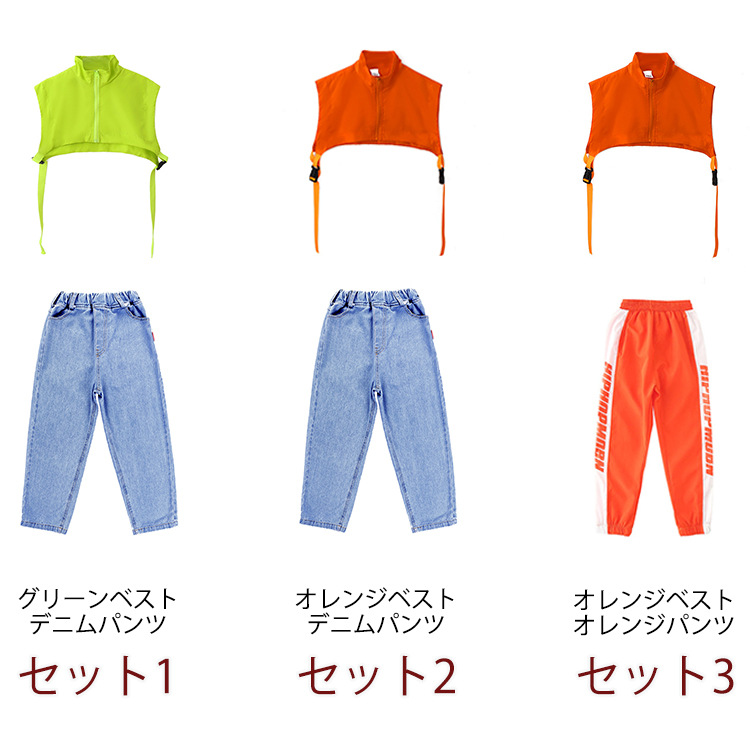 vertical-key: セット1 セット2 セット3 セット4 セット5 セット6 トレーナー グリーンベスト オレンジベスト デニムパンツ オレンジパンツ