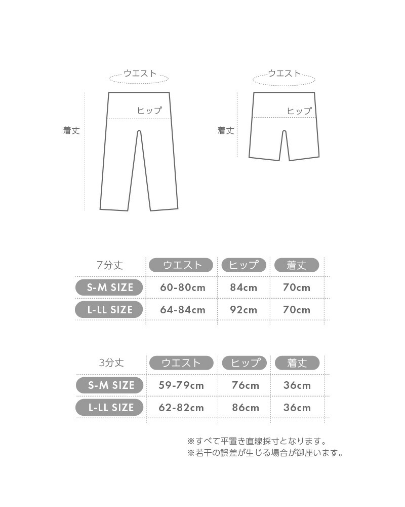 サイズ: 7分丈【S-M】 7分丈【L-LL】 3分丈【S-M】 3分丈【L-LL】