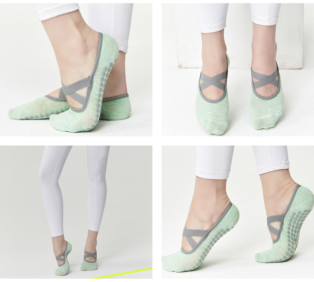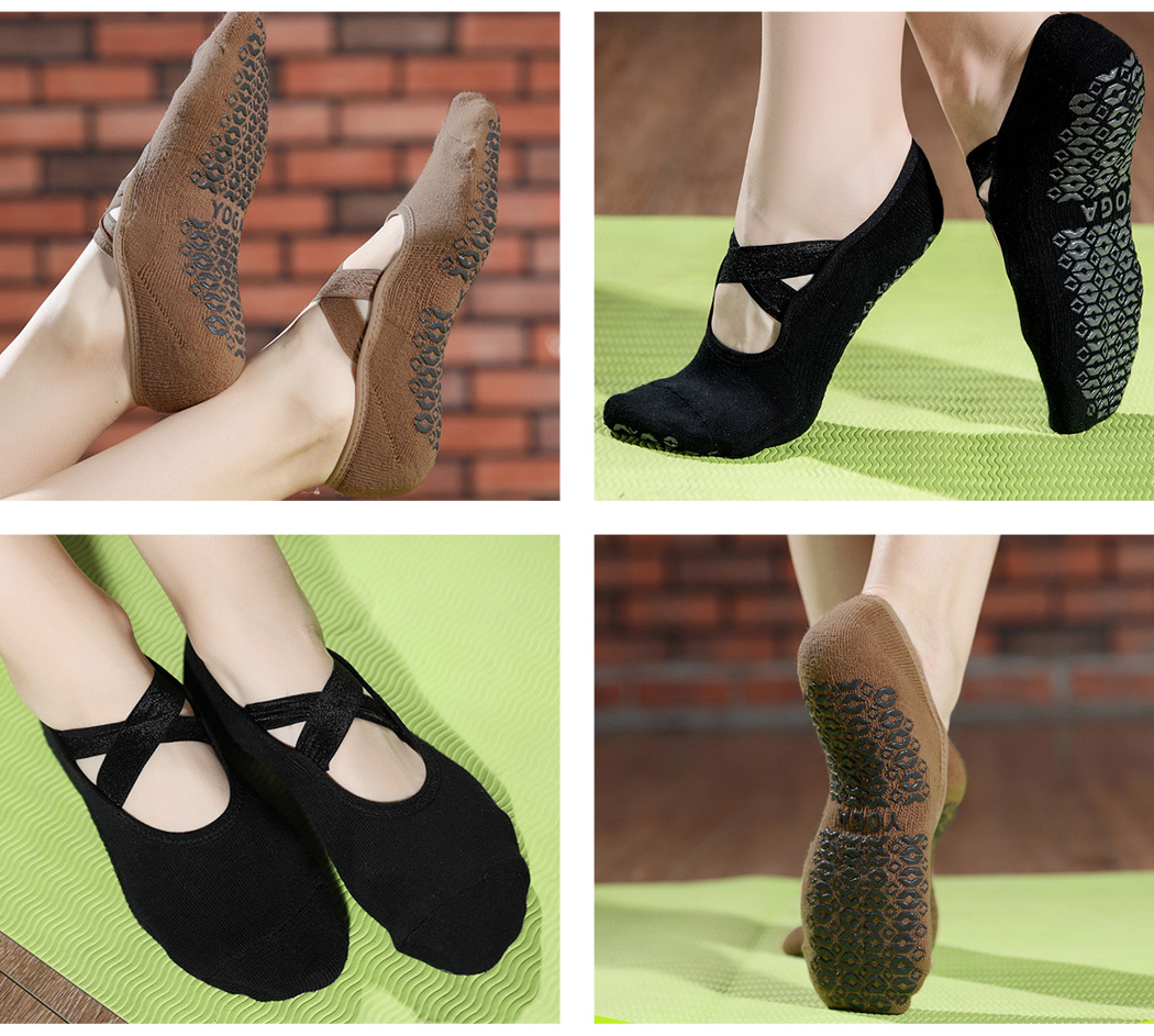 クロスストラップでグッドガール感を 通気性が良くお肌に優しい ヨガソックス 女性用 スポーツソックス 可愛い クロスバンド 綿 ウォーキング ジム 黒 つま先あり パステルカラー