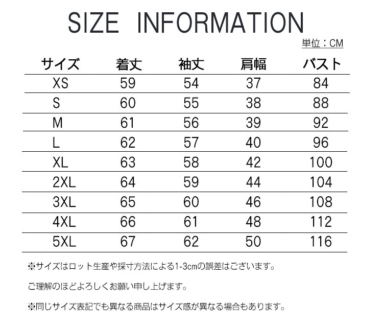 サイズ: XS S M L XL 2XL 3XL 4XL 5XL