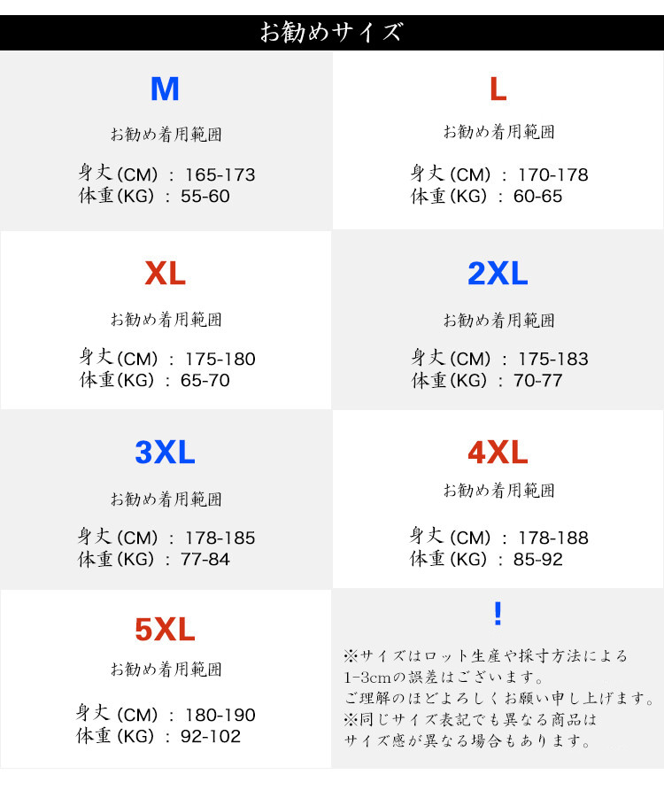 サイズ S M L XL 2XL 3XL 4XL 5XL