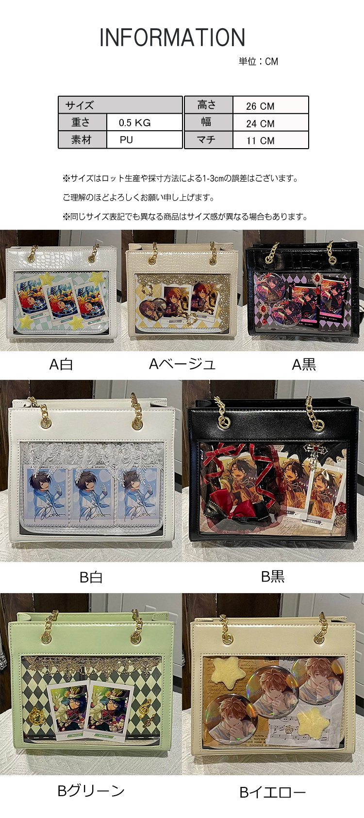カラー: A白 A黒 Aベージュ B白 B黒 Bグリーン Bイエロー