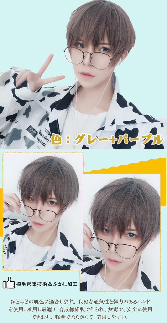 Item Information商品名 ウィッグ フルウィッグ ショート メンズ レディース かつら 男性 メンズウィッグ かつら 短い髪 カツラ コスプレ cosplay 日常 耐熱 遊び ハロウィン 学校 仕事 面接 ネット付き 男女兼用素材 耐熱ファイバー(耐熱温度:120度以内)サイズ 前髪:約16cm±3cm 後髪:約30cm±3cm フック式のアジャスター付き、頭周りにあわせて段階調節可能(頭周り:約55-58cm)カラー ブラック、グレー、アッシュグレー、グレー+パープル、アッシュグリーン、ピンクパープルグラデウィッグについて: つけ方: